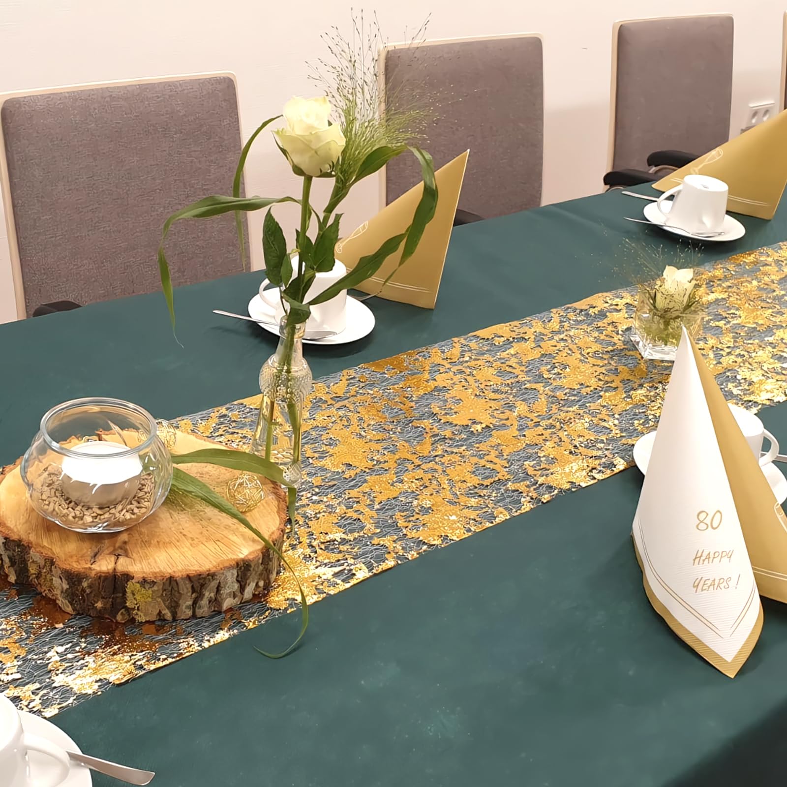 MATÉRIAU DE HAUTE QUALITÉ : notre chemin de table en polyester durable est résistant à l'eau et à l'huile. Aspect exquis : notre chemin de table est conçu avec du papier gaufré en feuille métallique. Ce chemin de table offre suffisamment de place pour votre créativité. Apportez une touche d'élégance à vos repas avec notre collection Chemin Table Doré. Découvrez des pièces raffinées et lumineuses pour sublimer votre décor Le chemin de table vert est conçu avec du papier tampon en feuille métallique, avec une surface lumineuse et brillante qui rend les tables, la vaisselle... Chemin De Table Lot De 2 Chemins De Table Dorés - Décoration De Table - 28 Cm Décoration Anniversaire Longueur réglable : vous recevrez 2 rouleaux de chemin de table doré et une paire de ciseaux, chaque nappe mesure 5 mètres de long et 28 cm de large. Numéros de table Dorés Mariage – Lital Bride Cela lui donne une surface brillante et rayonnante qui donne à vos tables et à votre vaisselle un aspect raffiné et élégant. Vous pouvez facilement le couper à la longueur souhaitée avec des ciseaux et ainsi l'adapter parfaitement à vos besoins. Votre créativité n'a pas de limites.