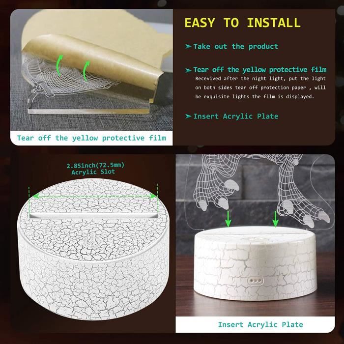 Mode de commutation : télécommande + interrupteur tactile. Il peut ensuite être contrôlé à l'aide du toucher et de la télécommande La méthode Télécommande / simple bouton à un bouton, la lumière de couleur est décorée avec 16 variations de couleur: Rouge, vert, bleu, jaune, Cyan, rose, blanc Connexion USB ou alimentation par batterie 3 - AAA, consommation d'énergie 0012 kw. Même les bébés peuvent l'utiliser correctement dans le lit., 1., La plaque de guidage de lumière est fabriquée en acrylique au lieu du verre, solide, dure, haute ténacité, non fragile, ne blessera pas l'enfant. Remplissez notre monde avec plus de soin, de joie et de plaisir dans la vie. Avant d'utiliser la télécommande, vous devez retirer le petit film de la télécommande, puis il peut être utilisé normalement. La 3D vive et rêveuse est uniquement destinée aux effets visuels, mais est en réalité présentée comme une plaque de guidage de lumière en acrylique hautement transparente. Bouton tactile : appuyez une fois, une couleur s'allume, appuyez à nouveau, une autre couleur s'allume. Style : mode et art créatif. 1 base, 1 câble USB., 1 télécommande. Si vous voulez utiliser la fonction batterie, veuillez retirer le couvercle de la batterie sur la base et insérer la batterie. Très faible conductivité thermique, ne chauffe pas après une longue période de travail. SUPERHONGJIHAO Veilleuse LED 3D pour enfants avec Retirer du sac en mousse de polyéthylène, saisir les bords de la résine acrylique, déchirer le film protecteur des deux côtés et insérer... Rappel spécial : Avant utilisation, veillez à retirer le film protecteur des deux côtés de la plaque de guidage de lumière, afin que l'effet d'éclairage soit meilleur Veilleuse Connectée SUPERHONGJIHAO Veilleuse Pour Enfants 3D Notre promesse: vous offrir une lampe de nuit de qualité à 100%. Contenu de l'emballage : 1 plaque de guidage de lumière. 1 mode d'emploi en anglais. Processus de fonctionnement : sortez-le du sac en mousse de polyéthylène, maintenez le bord de la résine acrylique, retirez le film protecteur des deux côtés et insérez-le dans la base de la lampe de bureau. Cadeau Sonic SUPERHONGJIHAO Veilleuse 3D Pour Enfants - Lampe LED Avec T L 1050565 Lampe Sonic