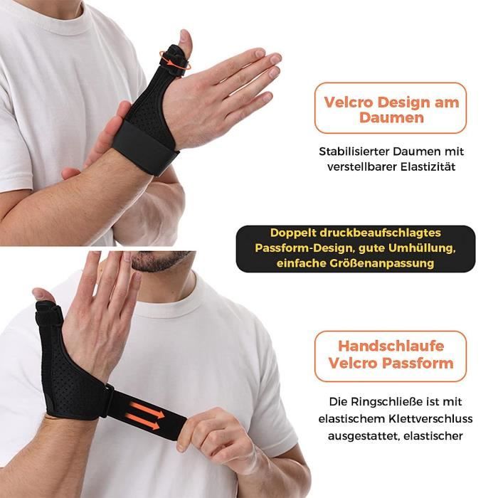 TPTGIAR Orthèse de pouce droite et gauche, attelle ergonomique pour le pouce droite et gauche, bandage métacarpien avec 2 attelles pour un soutien ultra fort, bandage de pouce pour homme et femme Fonctions : pour soutenir et protéger les poignets. Attelle de pouce pour stabiliser et soulager les douleurs liées à la rhizarthrose, tendinite ou entorse. Confort optimal pour une récupération rapide et efficace Orthèse-Attelle pour l'immobilisation de l'articulation métacarpo-phalangienne du pouce. Il s'adapte parfaitement aux contours du poignet et du pouce, offre un soutien stable et ne limite pas l'utilisation quotidienne. Doux à porter : la doublure intérieure de l'attelle pour le pouce est fabriquée en tissu doux qui donne un confort optimal, réduit les frottements tout en offrant un soutien au poignet et au pouce. Attelle de poignet pour pouce : vous recevrez un bandage de pouce réglable qui s'adapte parfaitement au pouce et au poignet. Il n'augmente pas la charge lors du port tout en assurant un confort sec et frais pendant longtemps. Nombreuses possibilités d'utilisation : le bandage de pouce est adapté à différents domaines d'application tels que la protection quotidienne, la rééducation médicale, le sport et le soutien professionnel. Il peut soulager efficacement la douleur de l'arthrite et offre une combinaison de confort et de fonctionnalité. Design ergonomique : l'attelle de pouce est conçue selon des principes ergonomiques et prend en compte la structure et les besoins de mouvement de la main. Orthèse Poignet Pouce Attelle De Pouce Droite Et Gauche, Orthèse De Pouce, Orthèse Pour Articulation Du Pouce, Orthèse De Pouce Pour Blessures Du Pouce - Santé - Mieux Vivre Orthese Pouce Droit Attelle Pouce, Orthese Pouce, Orthèse Pouce pour Main Droite Gauche... BraceUP Attelle Pouce, Orthèse Pouce pour Main Droite & Gauche