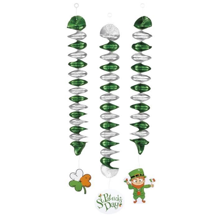 Ce lot de 3 guirlandes à suspendre est idéal pour compléter une décoration sur le thème de la Saint Patrick. De couleur vert et argent, ces trois guirlandes en forme de spirales disposent d'une accroche pour vous permettre de les suspendre facilement 1 Téléchargez ce vecteur Premium sur Guirlande de la fête de Saint-Patrick Illustration à l'aquarelle et aux marqueurs Art isolé dessiné à la main de banderoles de fête Appeler des drapeaux pour la célébration des fêtes Pour l'impression de flyers de décoration et explorez des millions de vecteurs professionnels sur Freepik. Celebrate St Paddy's Day! Find all the green, Irish, shamrock and green decor you need for a Happy St Patrick's Day at Christmas Central... St Patricks Day Clearance Guirlande - St Patrick - 3 M | Le Géant De La Fête Deco Saint Patrick Saint-Patrick : fabriquez une guirlande arc-en-ciel et sa marmite d'or