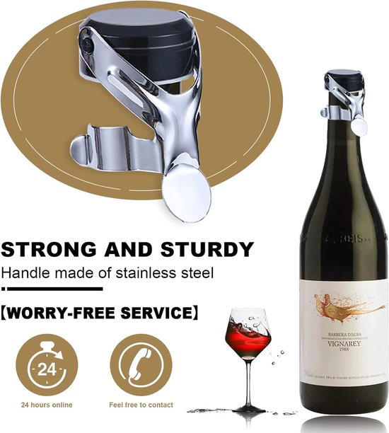 Bouchon de bouteille Caractéristiques : Matériau : acier inoxydable Couleur : noir Taille : 4,9 x 6,5 cm Facile à utiliser Couvrez la bouteille avec le bouchon champagne et appuyez sur la en métal sur le côté pour fermer la bouteille. Conservation Vin Champagne Lot De 4 Bouchons De Vin Réutilisables - Étanches - Multicolores - Pour Champagne, Bière, Boissons Lot 4 Bouchons Caoutchouc Tire bouchon a levier PRO Vacu Vin Le bouchon mousseur d'étanchéité du bouchon permet de profiter du vin en bouteille bien conservé même le lendemain. Lot De 4 Bouchons De Bouteille Avec Levier, Bouchon à Le bouchon à champagne peut être bien fixé sur la bouteille pour mieux préserver le goût et la fraîcheur du vin. Matériau sûr : le bouchon de bouteille de vin est fait de matériau de qualité alimentaire, silicone et acier inoxydable, réutilisable et pratique pour l'environnement., 100 % hermétique. Les bouchons de bouteille sont réutilisables et très pratiques. Tire-Bouchon Coloré À Levier Professionnel Sommelier - Tirabuscion...
