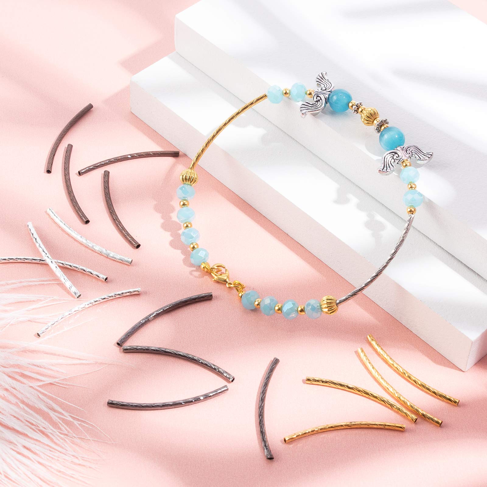 Design exquis:perles tubulaires incurvées en argent antique et or antique, des lignes finement sculptées et des motifs floraux, et le style tibétain classique font que votre conception de bijoux se démarque instantanément et ne se démode jamais. Une large gamme de styles et de couleurs à mélanger et à assortir. Il peut être utilisé pendant une longue période et peut également être utilisé pour fabriquer des décorations d'Halloween et de Noël., ., Bricolage:que vous fabriquiez des bracelets, Colliers, Des boucles d'oreilles, ou d'autres bijoux, ces perles tubulaires incurvées peuvent facilement être incorporées dans votre vision créative, vous offrant des possibilités infinies de correspondance. Utilisation polyvalente : idéal pour la fabrication de divers bijoux, tels que des bracelets à mémoire de forme, des colliers, des bracelets de cheville, des chaînes de poignet, etc. Que ce soit pour un usage quotidien, une occasion formelle ou des cadeaux de vacances, ils sont le choix parfait Description. Perles en tube de nouilles incurvées : avec un éclat poli, ces perles sont fines et en forme de nouilles légèrement incurvées avec un trou de 2 mm... Billes Mammouth PH PandaHall Lot De 220 Perles Tubulaires Incurvées Argentées De 4 Tailles Pour La Fabrication De Bijoux Perles A Ecraser PH PandaHall 3 Styles 48 pièces Perles Tubes Courbées Argent