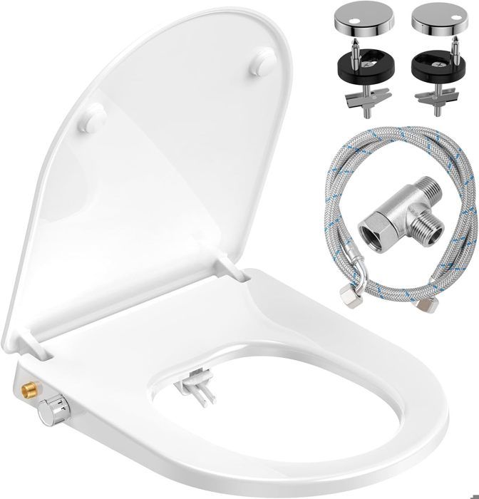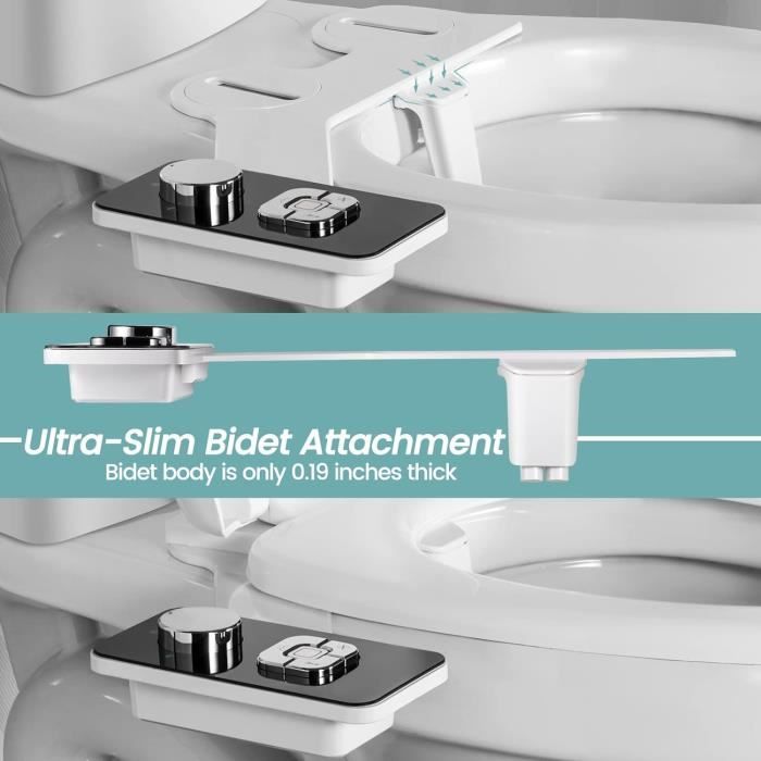 1 manuel d'utilisation en anglais. Détails : Buses : il y a moins d'espace pour un nettoyage facile. Siège de toilettes avec bidet intégré, idéal pour une hygiène optimale |Contrôle de température |Double douche pour un confort maximal |Installation facile et le design à trois trous vous apporte plus de puissance de lavage appropriée. Utilisation : Ce produit est valable pour les outils de fermeture avec un espacement entre les trous de 4,5 à 6,4 pouces. Et vous n'avez pas à vous soucier du manque de prise de courant près des toilettes ou le câble d'alimentation n'est pas assez long. Filtre : le filtre intégré de la buse peut filtrer efficacement les impuretés et assurer une eau propre. Bidet Toilette WC,Pulvérisateur Bidet Non Électrique,Buses Rétractables Matériau de haute qualité : ce siège de toilette est fabriqué en polypropylène de haute qualité, avec une bonne dureté et ténacité, non toxique et inodore, il peut être utilisé en toute sécurité pendant une longue période. Lavage avant et arrière : les doubles buses offrent un nettoyage avant et arrière pour un nettoyage complet, assurant une hygiène et un soulagement efficace des hémorroïdes et de la constipation, mais aussi pour assurer l'hygiène féminine avant et après la menstruation. Contenu de la livraison : 1 siège de toilette., 1 tuyau. Abattant Wc Japonais Bidet Toilette WC – Non électrique Pour Bidet Avec Double Buses Abattant Wc Japonais Mécanique Pulvérisateur de bidet non électrique avec doubles buses télescopiques... Tous les accessoires nécessaires Caractéristiques : Coloris : blanc.
