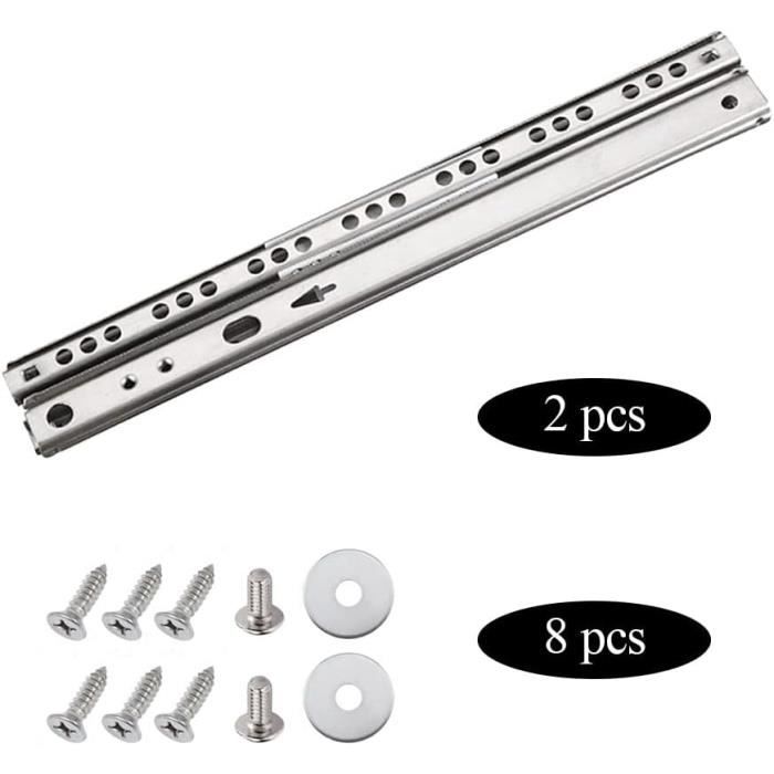 Glissières télescopiques, glissières de tiroir robustes, glissières de tiroir, glissières d'armoire, glissières de tiroir industrielles, glissières de tiroir, composants de mouvement linéaire, composants coulissants et inclinables ou rabattables, produits de montage d'outils et supports de fixation pour une grande variété d'applications 1., Nos glissières de tiroir sont idéales pour presque tous les types de tiroirs, adaptées aux armoires de cuisine, armoires, casiers, tiroirs, bureaux, tables de chevet, claviers, tables basses, etc. Information produit Nom: glissière de tiroir La couleur noire Matériel: acier laminéà froid Nombre de sections: 2 Installation: installation latérale Taille: 280 mm, 330 mm, 385 mm Largeur: environ 27 mmÉpaisseur: environ 9 mm Type: roulement à billes Emballage: 1 paire (deux) Charge: 25 kg 2 Pièces De Glissière Télescopique De Panier À Tirer Fait ison Glissière Télescopique Pour Tiroir Transfusion George Eliot Réussite Glissière Pour Tiroir Leroy Merlin Salle De Ba Double Course Il empêche également l'ouverture accidentelle des tiroirs. 2 sections, boucle à un bouton pour une installation plus facile ★ Installation de positionnement poreux, conception scientifique et raisonnable. ★ Coussin anti-collision: le coussin anti-collision derrière le rail peut empêcher le tiroir de se fermer de force et d'endommager le rail. ★ Matériau: matériau en acier laminéà froid, texture claire, pas facile à oxyder, pas facile à rouiller. Vous avez besoin de glissières de tiroirs dans un environnement poussiéreux ? Dans ce cas, grâce à leur facilité d'entretien, les glissières à rouleaux sont le meilleur choix. En outre, les guides à galets sont parfaits pour les bricoleurs. Une armoire fabriquée soi-même, en bois d'échafaudage par exemple, n'est pas toujours droite. Les guides à rouleaux peuvent y remédier Veuillez vous référer au produit actuel.