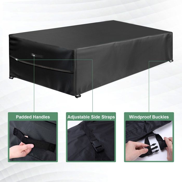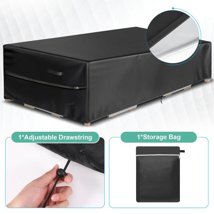 Housse Protection Salon de Jardin Table en 420D Oxford Convient à toutes les saisons, cette bache de protection salon de jardin peut protéger vos meubles toute l'année L'emballage comprend :1 x housse de table de jardin Couleur : noir Caractéristiques: Imperméable, anti-poussière, anti-neige, coupe-vent, résistant aux UV, Portable, résistant aux acides et aux alcalis, étanche, facile d... Housse Salon De Jardin 140x140x90cm Oxford Tissu Housse De Protection Pour Mobilier Housse De Table De Jardin Imperméable De Protection Avec Corde HNYDM Housses pour Mobilier de Jardin 140x80x105cm/LxWxH Housse de Table Jardin Rectangulaire, Couverture de Protection Meubles Bâche Salon de Jardin...