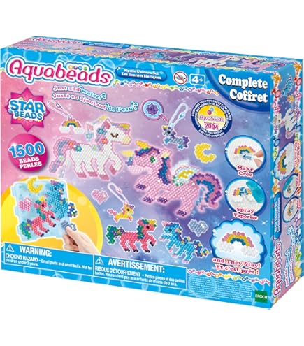 Le principe est simple : assemblez les perles, vaporisez de l'eau, laissez sécher et c'est prêt !, ., Les perles collent ensemble comme par magie., ., Thème de libre création. Aquabeads - Recharge pastel de 800 perles pour loisirs créatifs pour enfants à Avec cette recharge Aquabeads, votre enfant bénéficie de 350 perles supplémentaires pour créer différents accessoires de mode : robes et bijoux n'auront plus aucun secret pour votre enfant Aquabeads Garcon Aquabeads - 32708 - La Recharge Perles à Facettes Bleu Aquabeads Stitch Peut s'utiliser en complément des coffrets et des kits, ou en utilisant le canevas et le vaporisateur vendus à l'unité dans la gamme accessoires. Aquabeads - La Maxi Boite de Perles - 79958 - Recharge Perles Assorties... Dès 4 ans Avertissement De Sûreté Ne convient pas aux enfants de moins de 3 ans. Une activité simple et sans danger: nul besoin de source de chaleur Réalisez d'étonnantes créations grâce à ces perles qui se collent à l'eau Les enfants vont adorer créer des bijoux et des figurines avec ces perles pastel qui s'assemblent facilement avec de l'eau.