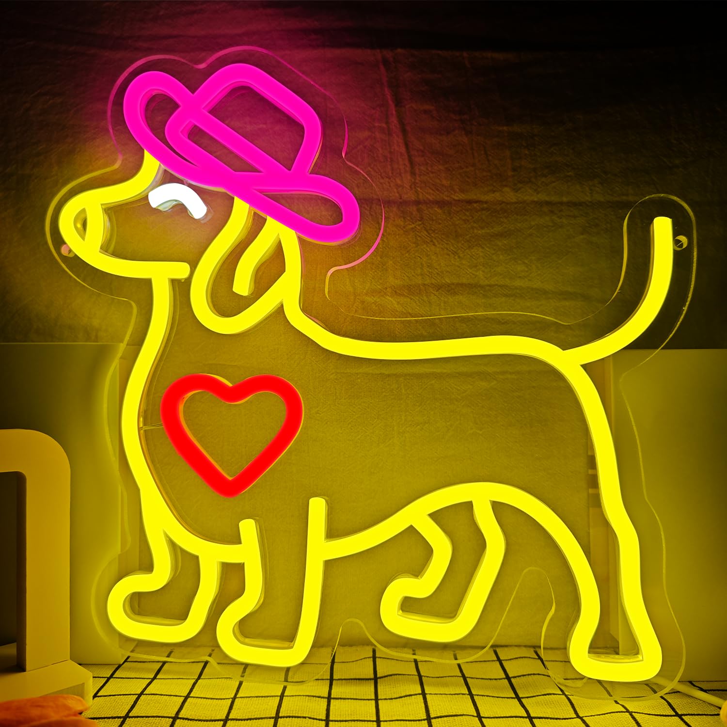 Il est adapté pour un ami, un membre de la famille, un fan ou toute personne qui l'aime. Joli panneau néon teckel : ce panneau néon teckel peut ajouter des couleurs vives et du plaisir à n'importe quel espace. [PLACEMENT RÉGLABLE DU FER À CHEVAL]Les positions des fers à cheval de ce support étant réglables, vous pouvez personnaliser la disposition pour l'adapter à différentes tailles de chapeaux. Il est parfait pour l'affichage dans les magasins, chambres, bars, clubs, restaurants et n'importe quelle pièce que vous aimez. Vous pouvez régler la luminosité à votre goût. Panneau Néon « Save A Horse Ride A Cowboy » Pour Décoration Murale, Panneau Led À Intensité Détails du produit : la taille du panneau néon teckel pour décoration murale est de 34,8 x 24,4 cm, et il est livré avec un câble USB. Panneau néon teckel]Le teckel avec des lunettes joue sur un skateboard et porte un chapeau de cowboy de style occidental. Le design néon unique et la... Chapeau de cow-boy Aquarelle dessin chapeau marron occidental dans un CHIEN COWBOY COOL : Ajoutez une touche ludique à n'importe quelle pièce avec ce néon LED vibrant en forme de chien de cowboy portant un chapeau bleu Avec une basse tension de 5 V, il est plus économe en énergie, et il n'y a aucun risque de bris de verre ou de fuite de substances nocives [INSTALLATION FACILE GRÂCE À L'ADHÉSIF ÉPONGE]L'arrière du porte-chapeaux est doté d'un puissant adhésif en éponge qui lui permet de se fixer solidement aux murs, aux crochets ou à toute autre surface plane. [UN CADEAU BIEN PENSÉ]Ce porte-chapeau personnalisé en forme de fer à cheval est un excellent cadeau pour les anniversaires, les pendaisons de crémaillère ou toute autre occasion spéciale. Non seulement c'est une décoration d'intérieur pratique, mais c'est aussi un cadeau créatif et surprenant qui apportera de la joie au destinataire Matériau sûr : le panneau est fabriqué avec des panneaux en acrylique transparent de qualité supérieure et des bandes lumineuses douces qui émettent une lumière vive.