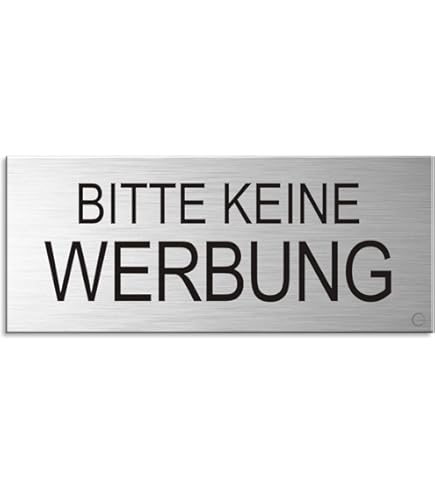 Rahmenlos 29013-S Plaque de boîte aux lettres en acier inoxydable Propriété : résistant à la corrosion. Épaisseur : 1 mm avec Film adhésif. Produit fabriqué en Allemagne Panneau « Bitte Keine Werbung Und Keine Kostenlosen Zeitungen Veuillez veiller à ce que la surface de pose soit grasse avant de coller. Plaque de boîte aux lettres avec inscription en allemand Keine Werbung keine Zeitungen , Format : 66 x 25 mm Sans graisse, silicone et poussière. Emballage : sac en polyéthylène. Couleur : résine noire mate., Finition : coupe plane. Bitte keine werbung Banque de photographies et d’images à haute... Finition : aspect acier inoxydable., Dimensions : 66 x 25 mm.