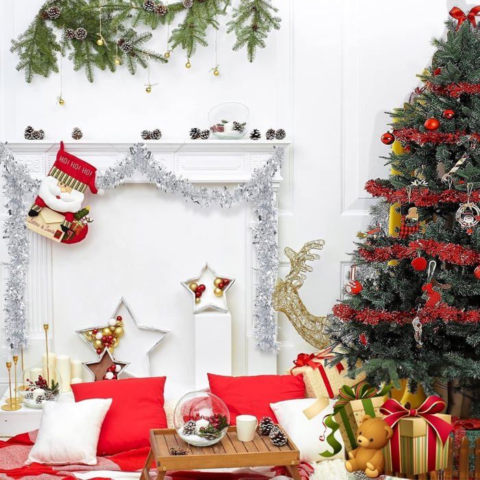 Contenu de l'emballage : vous recevrez 4 pièces de guirlandes argentées, d'une longueur totale de 8 m. Matériau : les guirlandes d'arbre de Noël sont faites de pinceaux robustes et flexibles avec une surface brillante et réfléchissante qui les rend douces et moelleuses. Application : la guirlande torsadée peut non seulement être accrochée sur l'arbre de Noël, ou enroulée autour des escaliers, mais peut également être collée sur le mur, la porte, la fenêtre, le feu et partout où vous voulez décorer. LED Guirlande De Noël Guirlandes Lumineuse Pour Rideaux/Maison/Chambre Décoration Lumière Extérieure Lumières De Vacances acheter à prix bas - livraison gratuite, avis réels avec des photos Couronnes de Noël: 4 pcs Guirlande noel sapin, 2 m de long chacune, le diamètre est d'environ 9 cm, La bonne taille et la bonne densité, pour être coupée à la longueur souhaitée pour vos besoins de décoration de noël. Matériau de Qualité: La guirlande de noël est en plastique, brillante et brillante, solide et durable, bien fabriquée durable, légère et portable à transporter et... Sapin Décoration Sapin Métallique 3m 4 Guirlandes Sapin Noël 3m Scintillantes Rouge - Décoration Métallique Pour Arbre, Mariage, Fête Guirlande De Noel Guirlande Argentée Excellente décoration : cette guirlande d'instillations suspendues est parfaite pour la décoration de Noël, et est également idéale pour toute décoration de vacances, ce qui fournira des effets décoratifs riches et colorés pour vos célébrations, c'est un must have pour le retour de Noël.