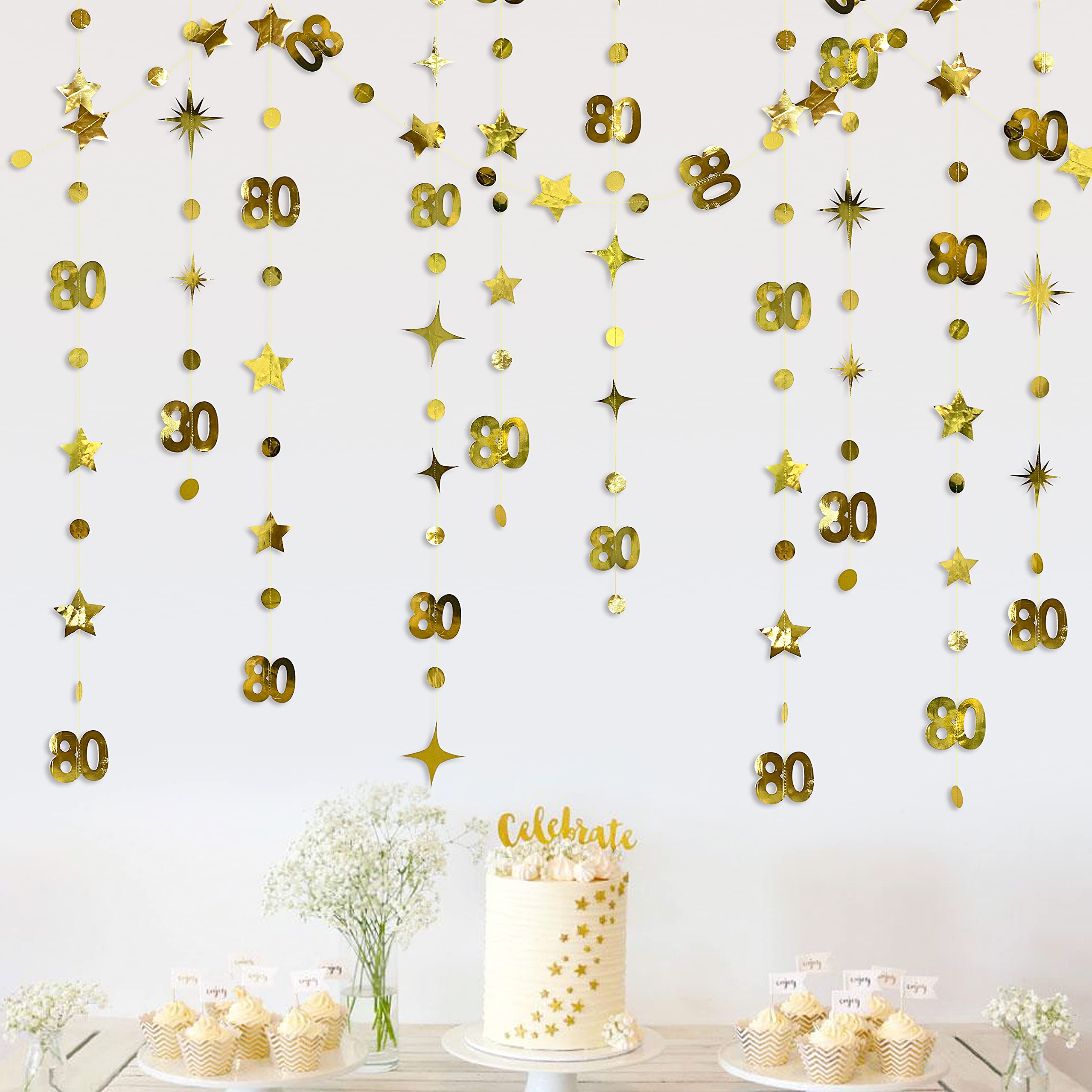 Durables Ballons Anniversaire 80 Ans Doré - Feuille Ballon Chiffre 80 Géant BANDEROLE,Rose Gold Star Moon--Guirlande de petites étoiles... Décorations Dorées Pour 80e Anniversaire - Guirlande D Content de l'emballage 4 * 11 pieds / 3.3 mètres d'or numéro 80 guirlandes d'étoiles scintillantes scintillantes et de points circulaires, totalisant 44...