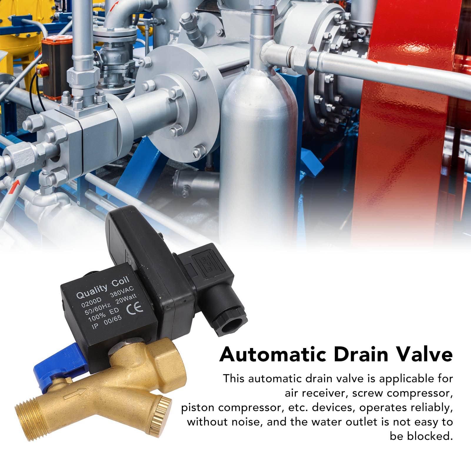 ★ Fabriqué en plastique ABS et corps de valve en laiton, robuste et longue durée d'utilisation Vanne Thermostatique Vanne De Vidange Automatique Powertool G1/2 DN15 - Valve De Compresseur Portatif Voyant lumineux : LED indiquant marche/arrêt Type : valve bidirectionnelle à action directe. Caractéristiques : Plage de tension : 10 %. Le temps d'ouverture de la valve est réglable de 0,5 à 10 secondes, et le temps de fermeture est réglable de 0,5 à 45 minutes ★ Facile à installer, fonctionnement entièrement automatique ★ Le temps d'ouverture de la valve est réglable de 0,5 à 10 secondes, et le temps de fermeture est réglable de 0,5 à 45 minutes Remarque : Lors du montage de la vanne de vidange électronique, veuillez vous assurer que : 1., L'air comprimé a été vidé (zéro pression)., 2., L'alimentation est coupée. Jeffergarden Vanne d'évent automatique en laiton DN15 G1/2 pour... Ouverture d'écoulement : 5 mm Classe d'isolation : H. Bouton de test manuel : oui (mini interrupteur). JIE Vanne De Vidange Automatique Électronique Dn15 G1/2 Pour Température ambiante : de -40 à 60 °C. Remarque : la prise est intégrée et vous pouvez dévisser la vis. Taille du port d'entrée/de sortie : 1,27 cm., Pression maximale : 1,6 MPa. pour être plus ajusté. Contenu : 1 valve d'eau automatique avec minuteur électrique.