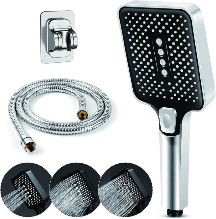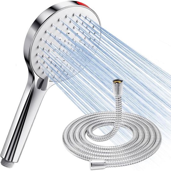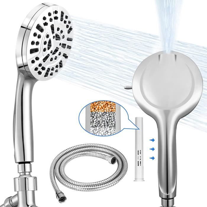 Pommeaux de douche haute pression même à faible débit d'eau et basse pression. Pomme de Douche,Anti Calcaire Douchette avec Filtre,Pommeau de Douche... Tuyau anti-explosion de 2 m de diamètre - La surface est traitée galvaniquement multicouche - Protection efficace contre la rouille et la corrosion. Tuyau Pommeau De Douche Pommeau De Douche Avec Tuyau 2m, Pommeau De Douche Haute Pressionet Economie Deau Avec Bouton Pause, Douchette Avec 3 Modes Types De Jets, Shower Head Filtrant Salle De Bain Et Rotative à Filtre Eau Douche Pourquoi choisir la tête d'arrosage TOPAHGOD avec tuyau ? Matériau ABS de qualité supérieure et plaque en acier inoxydable, design innovant, haute résistance aux températures et à la corrosion, respectueux de l'environnement et durable. La douche est quelque chose que nous faisons tous les jours. Il peut éliminer le chlore résiduel, les impuretés, les métaux lourds, les odeurs de rouille dans l'eau, maintenir le pH et l'eau propre peut hydrater votre peau et vos cheveux et vous rendre plus belle. Mais l'eau de douche que nous utilisons tous les jours est-elle vraiment propre ? Quelle est la qualité de l'eau dans votre lieu de résidence ? Votre peau devient-elle plus sèche ? Perte de cheveux, cheveux secs, avez-vous rencontré un tel problème ? Si oui, essayez ce pommeau de douche filtrant. Tête de douche : la surface est chromée et polie pour éviter efficacement les rayures et les décolorations, et elle peut conserver son nouvel éclat même après une longue utilisation. La puissance constante tout en économisant l'eau font de cette douchette un excellent choix pour tout foyer. Ø Bouton derrière le bouton de réglage du débit d'eau. Pommeau de douche avec filtre haute pression avec système de filtration à 15 couches, tuyau de 3 fonctions de pulvérisation : le pommeau de douche avec filtre dispose de 3 types de jet : pluie, jet puissant et mode mélange, et chaque mode de pulvérisation de douche offre une expérience de douche différente pour répondre à vos différents besoins de douche. Système de filtration efficace : ce pommeau de douche augmente la pression Il est équipé d'un filtre en coton PP de douche amélioré à 3 couches, qui filtre mieux l'eau calcaire et peut éliminer les hydrocarbures fluorés, les métaux lourds, les bactéries, la rouille, les odeurs, les sédiments et autres polluants de l'eau de la douche, contribue à une peau plus saine et plus lisse, et des cheveux plus doux et plus forts. Expérience de douche super confortable] Le pommeau de douche a 3 fonctions : pluie, jet, massage. La sélection du mode est facile avec l'interrupteur à... Ø Fonction d'arrêt, ce qui permet de ne plus fermer la valve au milieu pour réajuster la température de l'eau, facilite le bain. C'est votre robinet de douche idéal de qualité supérieure. Le pommeau de douche à économie d'eau dispose d'une structure de buse unique avec des ouvertures étroitement espacées qui garantissent un débit d'eau uniforme et permettent d'économiser jusqu'à 30 % d'eau. Il suffit de dévisser l'ancien tuyau de douche, de fixer le nouveau, de poser le pommeau de douche et le montage est terminé - rapidement.