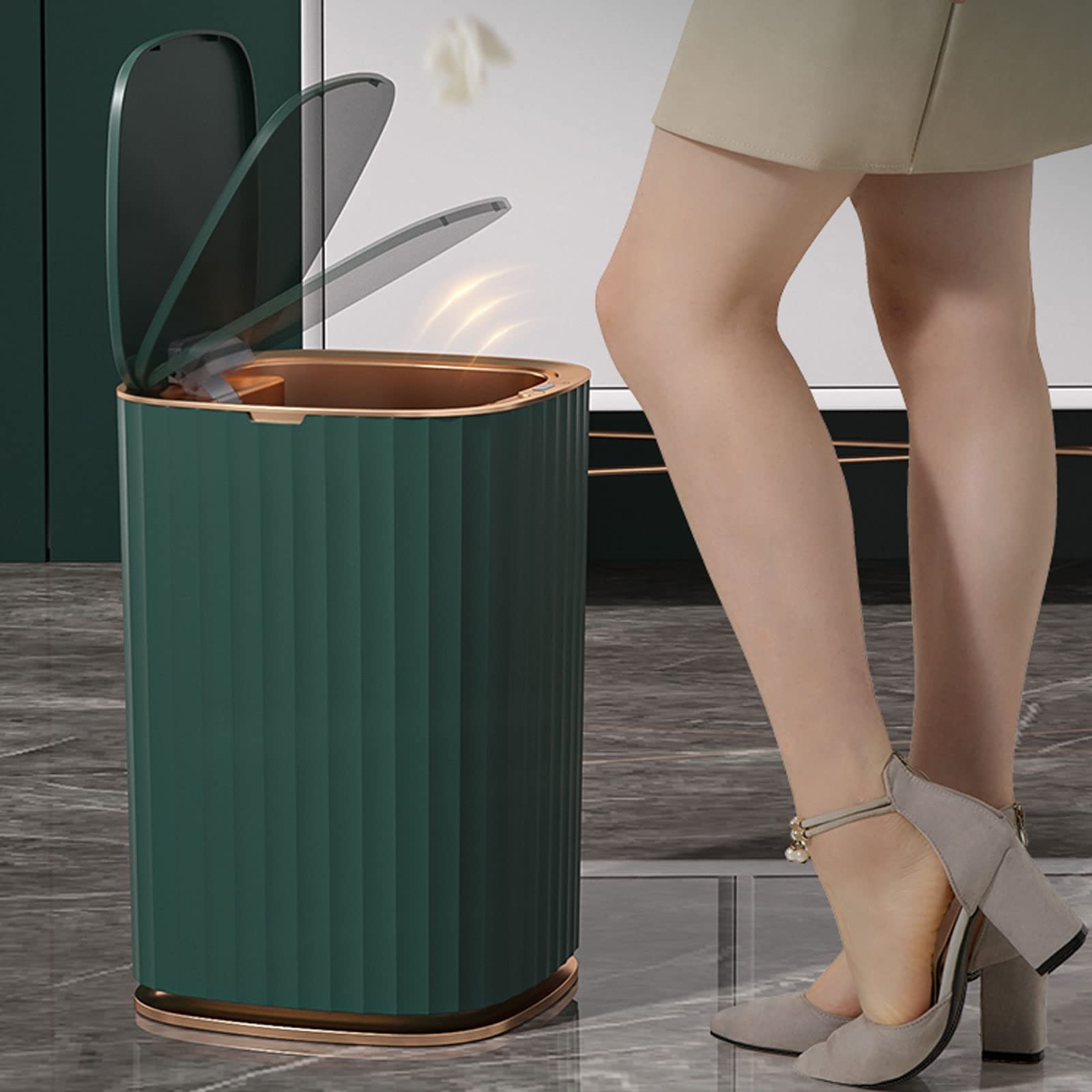 Poubelle Intelligente À Capteur Sans Contact - Poubelle De Salle De... Hygiène mains libres avec technologie de capteur : cette poubelle de salle de bain apporte commodité et propreté à votre maison. Le couvercle hermétique maintient les odeurs contenues et les animaux curieux loin de vos déchets, ce qui en fait un ajout essentiel aux ménages qui acceptent les animaux domestiques. Petite poubelle de salle de bain avec couvercle, poubelle Poubelle Automatique à Capteur Intelligent Pour Salle De Bain, Poubelle Intelligente Avec Couvercle Sans Contact – Corbeille Fine En Plastique étanche Pour Cuisine, Chambre à Coucher, Bureau Polyvalent et facile à utiliser : cette poubelle à capteur est parfaite pour les petits déchets comme les mouchoirs, le marc de café ou les restes alimentaires. Que ce soit dans votre salle de bain, votre chambre ou votre cuisine, cette petite poubelle intelligente mains libres rend la vie plus facile et plus propre pour tout le monde. Il fonctionne bien comme poubelle de salle de bain, poubelle de cuisine ou poubelle de toilette, gardant votre espace organisé et sans odeur. La surface lisse est facile à nettoyer, tandis que le détecteur de mouvement à piles (2 piles AA nécessaires, non fournies) offre une portabilité sans effort pour une utilisation comme poubelle de chambre, poubelle de cuisine ou petite poubelle dans votre maison. Durable et facile à nettoyer : fabriquée à partir de matériaux ABS de haute qualité, cette poubelle de salle de bain avec couvercle est légère mais robuste, assurant une performance durable. Mini Poubelle Avec Couvercle, Poubelle Automatique De Comptoir De... Le couvercle activé par le mouvement s'ouvre automatiquement lorsque votre main s'approche et se ferme doucement après 5 secondes.