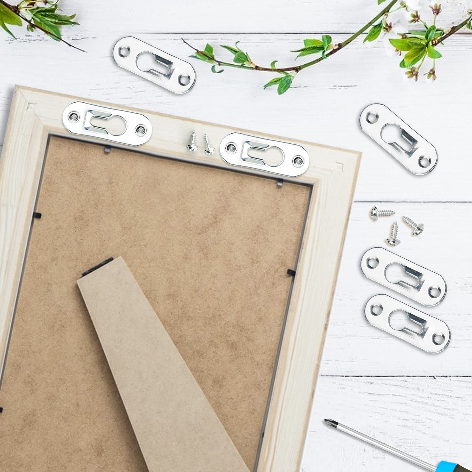 Les objets suspendus peuvent ajouter de l'éclat à votre maison. Conception convexe: Attache cadre a une conception convexe unique qui s'adapte étroitement au cadre photo ou au mur et maintient fermement l'article. 351 Pièces Accroche Tableau, Accroche Cadre avec Vis Triangulaires Accrocher vos cadres sans vous prendre la tête ? C'est possible avec ces crochets muraux en métal ! Le pack contient 240 pièces : 60 crochets double face... Le pendentif est très solide, pas facile à déformer et a une longue durée de vie. Attache Tableau Accroche Tableau Mural 30 Pièces Accroche Cadre 45*16MM Accroche Photo 30pcs 44 * 16mm accroche cadre et 60pcs 13mm vis, assez pour vos besoins quotidiens. Contenu du kit: 30pcs 44 * 16mm accroche tableau mural et 60pcs 13mm vis, assez pour vos besoins quotidiens. Spécifications: Nom du produit:attache cadre Matériau principal: fer métallique Couleur: argent Taille de la pièce suspendue: 44mm * 16mm / 1., 77 * 0., 63 pouces Longueur de vis: 13mm / 0,51 pouces Le forfait comprend: 30 x attache tableau 60 x vis Sinofort 20 Pièces Accroche Tableau Sans Percer 2 Styles Attache Cadre...
