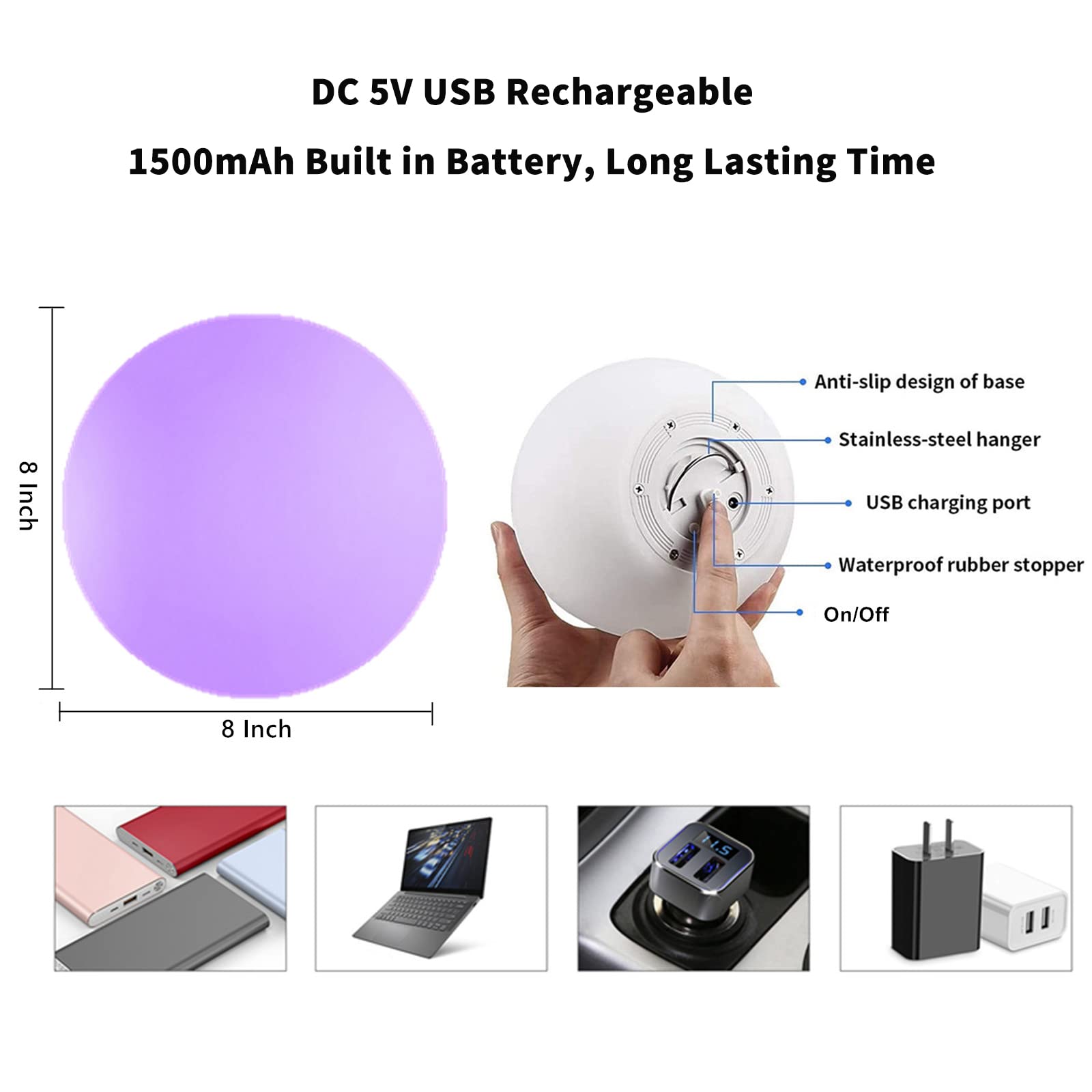L'ensemble du colis sera livré avec manuel, une télécommande et câble USB. Spécifications:Matériau: PE + ABSCouleur de la lumière : 16 couleurs RGBWOptions de taille : 5,9 ; 7,87Distance à distance : 10 m (large portée de 120°)Temps de charge : 4-10 heuresTemps de travail : 10-12HPoids : env. Pratique et perDurable : profitez d' contrôle jusqu'à 10 m de distance, avec une recharge USB garantissant une longue durée de vie opérationnelle. Principaux points forts · Type de finition. Standard · Matériau de base. Plastique · Dimensions du produit. 16P x 16l x 16H centimètres · Type de lampe. LED Admiré par l'atmosphère d' restaurant romantique? Vous voulez avoir une boule lumineuse colorée pour décorer votre chambre ou votre cour ? Pas de problème, cette boule lumineuse d'amélioration de fête sera votre meilleur choix., Ne le manquez pas!, Caractéristiques:1., Accessoire idéal pour la décoration de la maison, amélioration de l'atmosphère de fête, éclairage nocturne. Notre boule lumineuse LED rechargeable fournit une lueur constante, garantissant que vos dîners romantiques restent magnifiquement éclairés quelle que soit la météo., Achetez Guirlande lumineuse boule LED USB/batterie de 12M, guirlande lumineuse féerique pour anniversaire, maison, noël, vacances, décoration de fête de mariage du marchand Shop1103404160 Store en ligne ❤️ Obtenez les meilleurs nouveaux produits de BestDealPlus.com tous les jours. Éclairage personnalisable : choisissez parmi 16 couleurs RVB et 5 modes d'éclairage (flash, stroboscope, fondu, lisse, statique) via la télécommande pour s'adapter à n'importe quelle humeur ou occasion. perDurable et sûr : fabriquée à partir de matériaux PE et ABS, notre boule lumineuse est étanche, résistante à la poussière et aux UV, IR, plomb, mercure et autres substances nocives. Idéal pour les décors romantiques : dites adieu aux bougies qui scintillent au vent. Veilleuse LED Boule, 16 Couleurs RVB Rechargeable LED Ball Boule Led Boule Lumineuse Disco Pour Décoration De Fête D'Halloween, Mini Boule Lumineuse Noel Lampe Boule Télécommandée Boule Lumineuse Led D'Extérieur, Lampe Globe... incontournable pour les fêtes de Noël et d'Halloween.