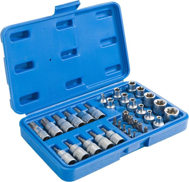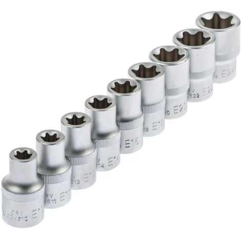 Toutes les douilles assorties sont livrées sur un rail d'emboîtement. En acier au chrome vanadium , Avec moletage Douilles profilées en E, entraînement 1/2 Longueur [mm]: 38 · Poids [kg]: 0.7 · Forme: court · Profil tête de vis / écrou: Torx · Transmission [pouces]: 1 / 2 · Unité quantitative: Kit · Taille: Е10,Е11,Е12... 024179 | Juego de llaves Torx Wera 9 piezas TX10 x 85 mm, TX15 x 90 mm... Douille 1/4 ASTA 954009-2 Jeu De Clé à Douille Torx, Entraînement: 1/2pouce Douille 12 Pans 9 douilles étoile 1/2 - AUTOBEST