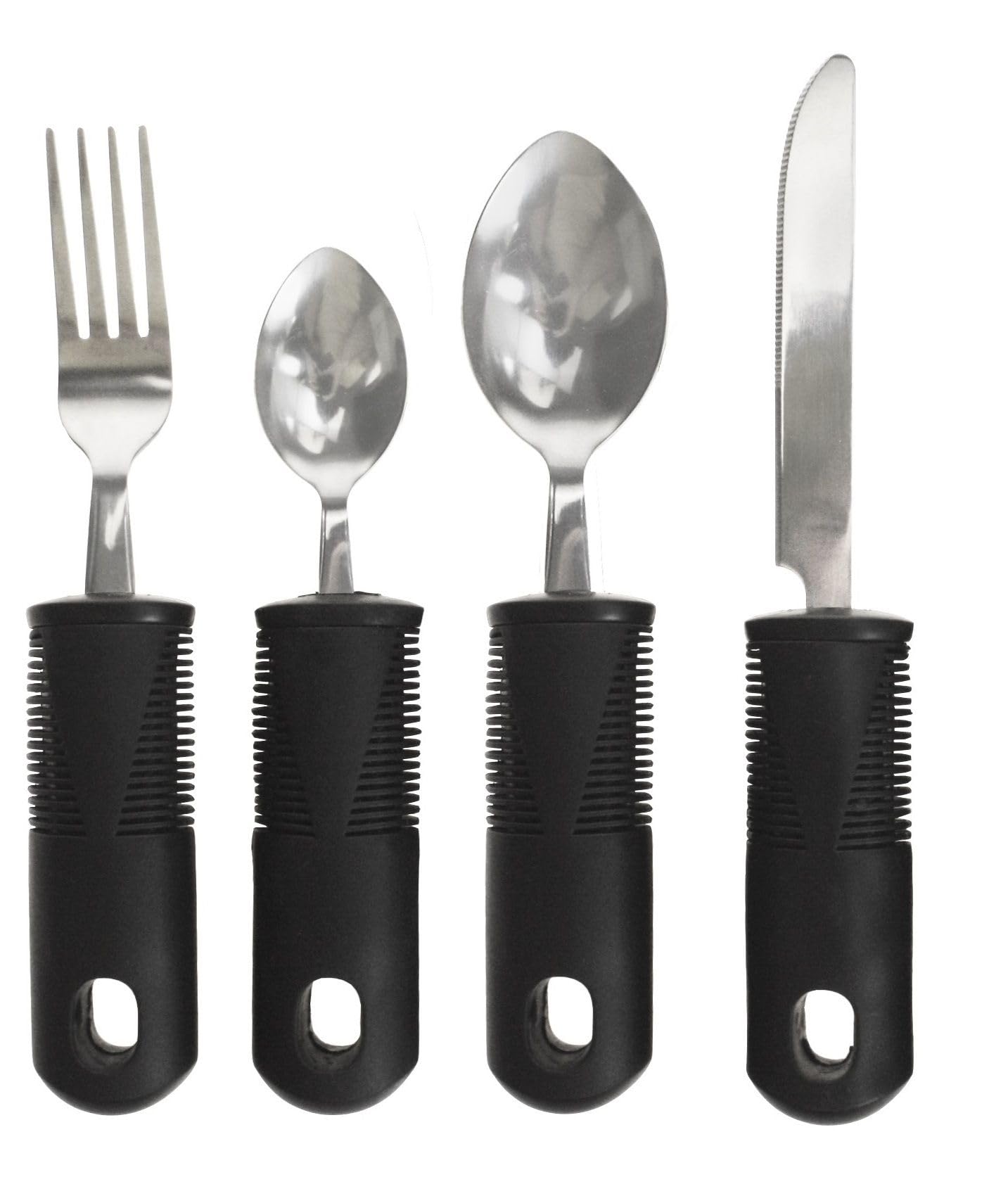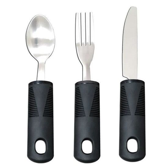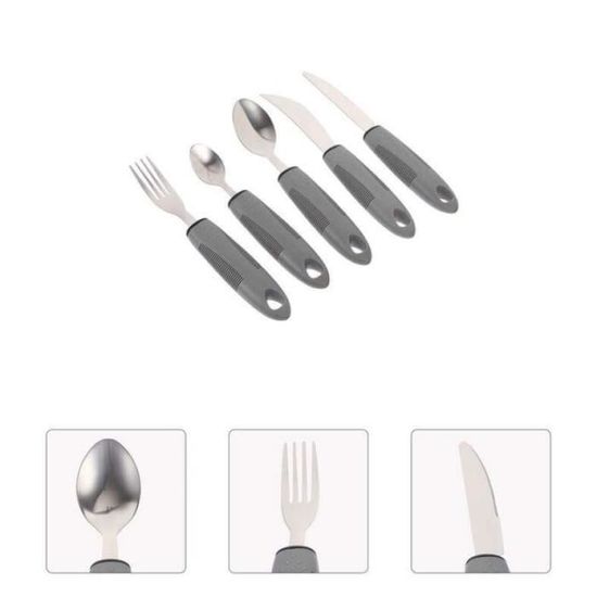 MENAGERE,Gray Set C--Vaisselle Anti secouement pour personnes âgées La poignée des ustensiles pour personnes handic Ces couverts sont spécialement conçus pour vous qui souffrez d'arthrite, de rhumatismes ou d'autres difficultés à avoir une bonne prise en main. Les poignées sont conçues de manière ergonomique avec des nervures flexibles qui facilitent leur prise en main pendant que vous mangez Set composé d'une fourchette, d'un couteau, une cuillère à soupe et un thé cuillère , Passe au lave-vaisselle ZC18104-CHAUSSE-PIEDEnsemble de couverts pondérés,ustensiles,cuillère adaptative pour personnes... Aide à Domicile Personnes âgées Couverts Ergonomiques Personnes âgées - Medical Domicile Set Couverts 48 Pièces Ces couverts en inox sont montés sur un épais manche en caoutchouc. La prise en main est parfaite et se servir de ses couverts ne demande plus d'effort.