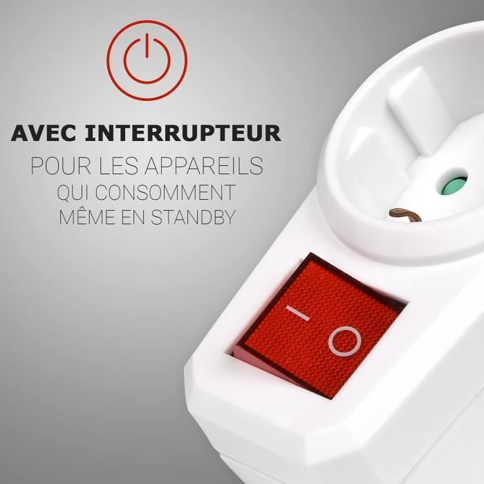 ITENSE - Multiprise électrique, prise multiple - Fiche triplite - Avec 3 prises - 1 x 16A + 2 x 6A - Avec interrupteur - Multiprise électrique murale - Couleur: blanc - Sécurité enfant - Certifié NF - Permet de brancher 3 appareils - Facile à installer & pratique - Installation sur une façade - Matière: PVC - Tension: 230V - Puissance: 3680W - Intensité du courant: 1x16A + 2x6A - Type de prise: 2P (Type C), 2P+T (Type E) Cette fiche triplite comporte 3 prises (2 de 6A et 1 de 16A) avec un interrupteur marche/arrêt qui permet de facilité le contrôle du courant, elle permet également de brancher 3 appareils. Dynamique et à l'écoute des évolutions technologiques du marché, itense offre un large choix complet en multiprises, prolongateurs, fiches, éclairages, lampes, torches, domotique, accessoires électriques, etc., ., . Multiprises, rallonges et enrouleurs - Electricité TRIPLITE: Multiprise 3 prises électrique. 3x16A Spécialiste en matériel électrique, itense, vous permet d'accéder à une large gamme de produits qui couvre tous les besoins de la vie quotidienne. Double Prise Fiche Multiprise Triplite - 3 Prises Frontales Avec Terre - Positionnement Vertical - Sécurité Multi Prise Elle est de couleur blanche et permet de brancher plusieurs équipements sans avoir besoin de vous servir de plusieurs rallonges. Fiche triplite Avec 3 prises 2 x 6A + 1 x 16A Avec interrupteur Matière: PVC Tension: 230V Puissance: 3680W Intensité du courant: 1x16A + 2x6A Type de prise: 2P (Type C), 2P+T (Type E) Couleur: Blanc Sécurité enfant Multiprise murale Certifié NF Pratique , Référence: 647910 Dynamique et à l'écoute des évolutions technologiques du marché, itense offre un large choix complet en multiprises, prolongateurs, fiches, éclairages, lampes, torches, domotique, accessoires électriques, etc., ., ., ITENSE - Multiprise électrique, prise multiple - Fiche triplite - Avec 3 prises - 1 x 16A + 2 x 6A - Avec interrupteur - Multiprise électrique murale - Couleur: blanc - Sécurité enfant - Certifié NF - Permet de brancher 3 appareils - Facile à installer & pratique - Installation sur une façade - Matière: PVC - Tension: 230V - Puissance: 3680W - Intensité du courant: 1x16A + 2x6A - Type de prise: 2P (Type C), 2P+T (Type E) Cette fiche multiprise frontale 3 prises LEGRAND 230V permet de brancher plusieurs appareils équipés de fiches avec ou sans terre, tels que l'électroménager classe I ou classe II, lampes, ordinateurs, TV, chaînes hi-fi, etc. La fiche multiprise sans interrupteur sera pratique pour alimenter jusqu'à...