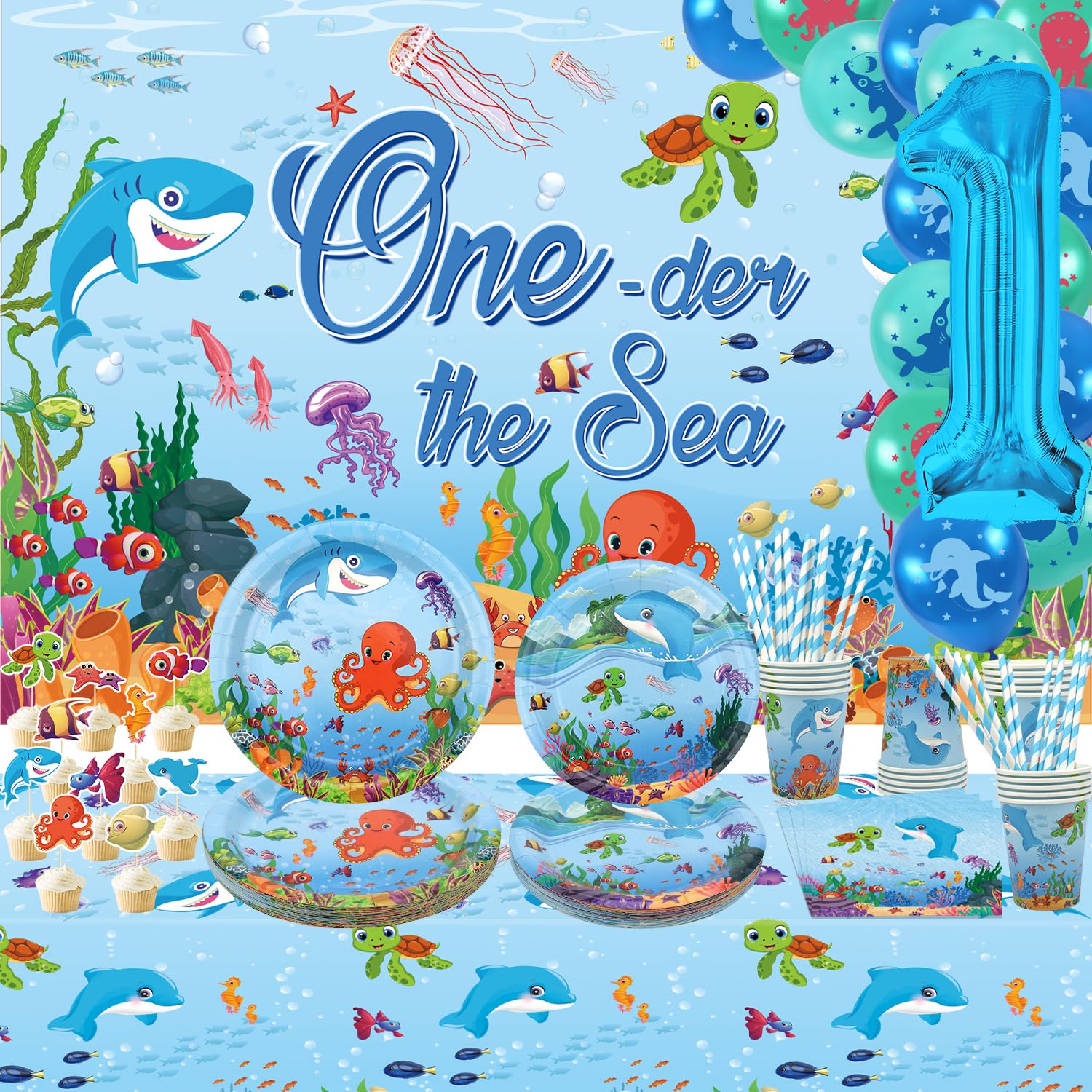 Fournitures de Fête d'anniversaire de l'océan : vous obtiendrez 1 toile de fond bleu Ocean Party HAPPY BIRTHDAY + 10 décorations d'animaux sous-marins + 18 ballons en latex à motif de poisson + 20 assiettes à dîner 9 + 20 assiettes à dessert 7 + 20 gobelets en papier 9 oz + 20 serviettes + 20 pailles + 1 housse de table Ocean Sea Life + 1 grand ballon bleu numéro 1 de 101,6 cm, 2 rubans seront parfaits pour décorer votre fête. Ne placez PAS les assiettes au micro-ondes. Les serviettes sont douces et absorbantes. 96 pièces assiettes de fête océan vaisselle jetable Dark Knight Batman Party Supplies Kit de Vaisselle pour 16 invités - Assiettes en Papier Super... Espace Enfant Sonic Party Supplies Décoration Set 51pcs Vaisselle Fête D Anniversaire Under Sea Football Party Supplies Haute Qualité : les assiettes sont fabriquées en papier épais de haute qualité. C'est définitivement un excellent choix de fête. Design Océanique : il s'agit de notre ensemble de fête exclusivement conçu avec un thème bleu océan. Idéal pour une fête sous-marine d'animaux marins. Cet ensemble offre une riche gamme de fournitures de fête, et vous n'avez besoin d'acheter qu'un seul ensemble pour décorer toute la fête d'anniversaire.