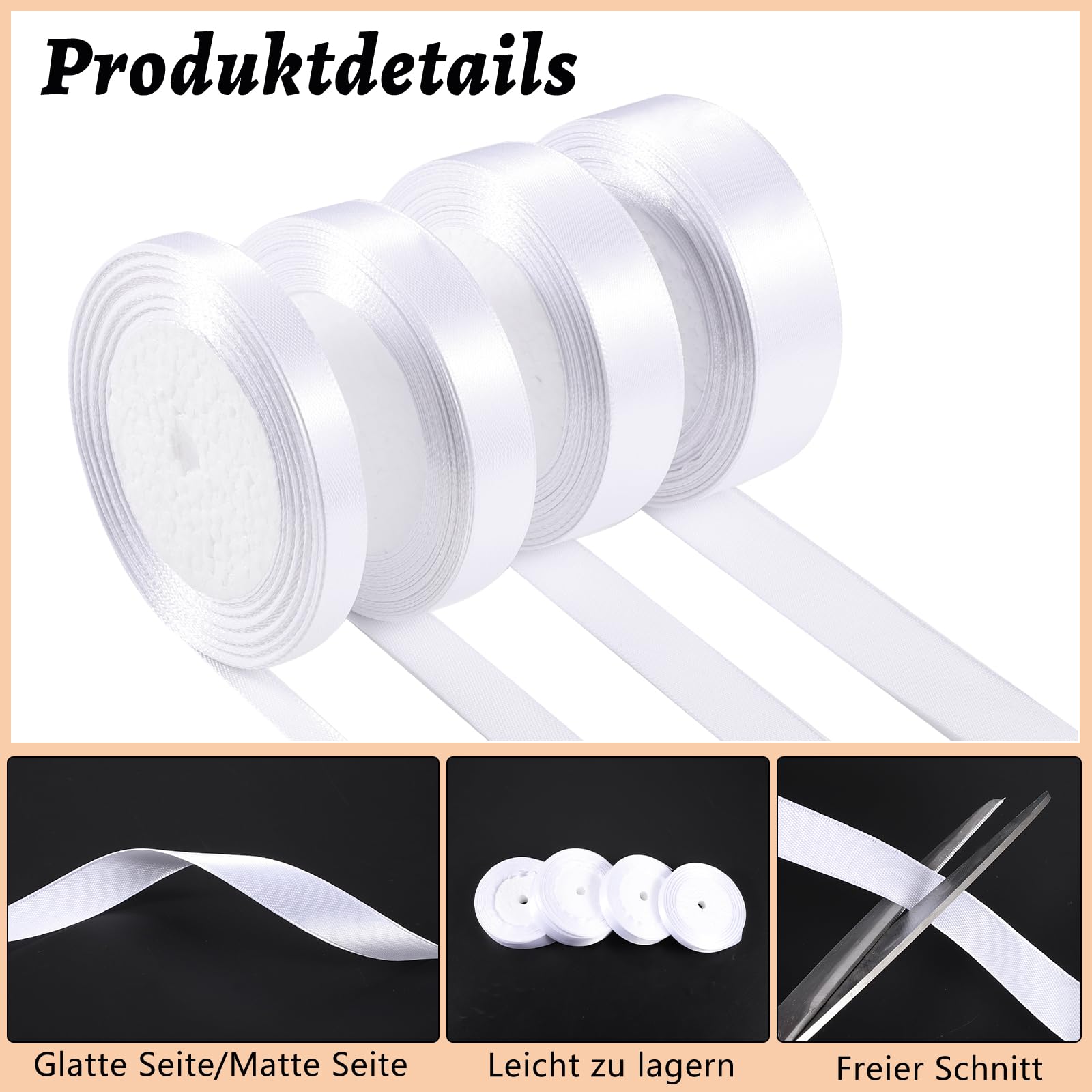 et crée une atmosphère festive forte. Ruban de satin blanc - 88 m de long - 10/15/20/25 mm de large - Ruban décoratif pour mariage, anniversaire, Saint-Valentin, fête, emballage cadeau, bricolage, décoration de mariage (22 m par rouleau) À propos de cet article 4 tailles : 4 rouleaux de ruban de satin blanc, chaque rouleau mesure 22 m de long et en 4 largeurs différentes, 1 cm, 1,5 cm, 2 cm et 2,5 cm, qui peuvent être... Ruban de satin blanc 10 mm x 22 m Ruban blanc : ruban décoratif de mariage, élégant et simple, tendance et polyvalent, peut être utilisé pour nouer des nœuds, des nœuds de ballons, emballer des cadeaux, etc. Ruban Satin Blanc PartyDeco Ruban De Satin Blanc 50 Mm X 25 M Pour Mariage, Anniversaire, Baptême, Communion, Noël, Fête, Réunion De Famille, Matière Textile Ruban Satin Noir Et Blanc CONTENU DU PAQUET : Vous recevrez 4 rouleaux de ruban décoratif blanc de 2 cm de large, chaque rouleau mesurant environ 22 mètres de long RUBAN EN TISSU DE HAUTE QUALITÉ : Fabriqué en tissu polyester épais, surface lisse, brillante et agréable au toucher. Les bords sont doublement cousus, pas de plis, pas besoin de repasser avant utilisation RUBANS D'ENVELOPPEMENT POUR CADEAUX : Ces... Caractéristiques : 1., Ruban de satin blanc, toucher doux, ne se froisse pas facilement, ne se décolore pas facilement, réutilisable., 2., 4 largeurs différentes de polyband peut répondre à vos différents besoins de décoration., 3., Les rubans larges peuvent être utilisés pour emballer, nouer, décorer, etc. 4 tailles : 4 rouleaux de ruban de satin blanc, chaque rouleau mesure 22 m de long et en 4 largeurs différentes, 1 cm, 1,5 cm, 2 cm et 2,5 cm, qui peuvent être utilisés pour différents besoins de décoration.