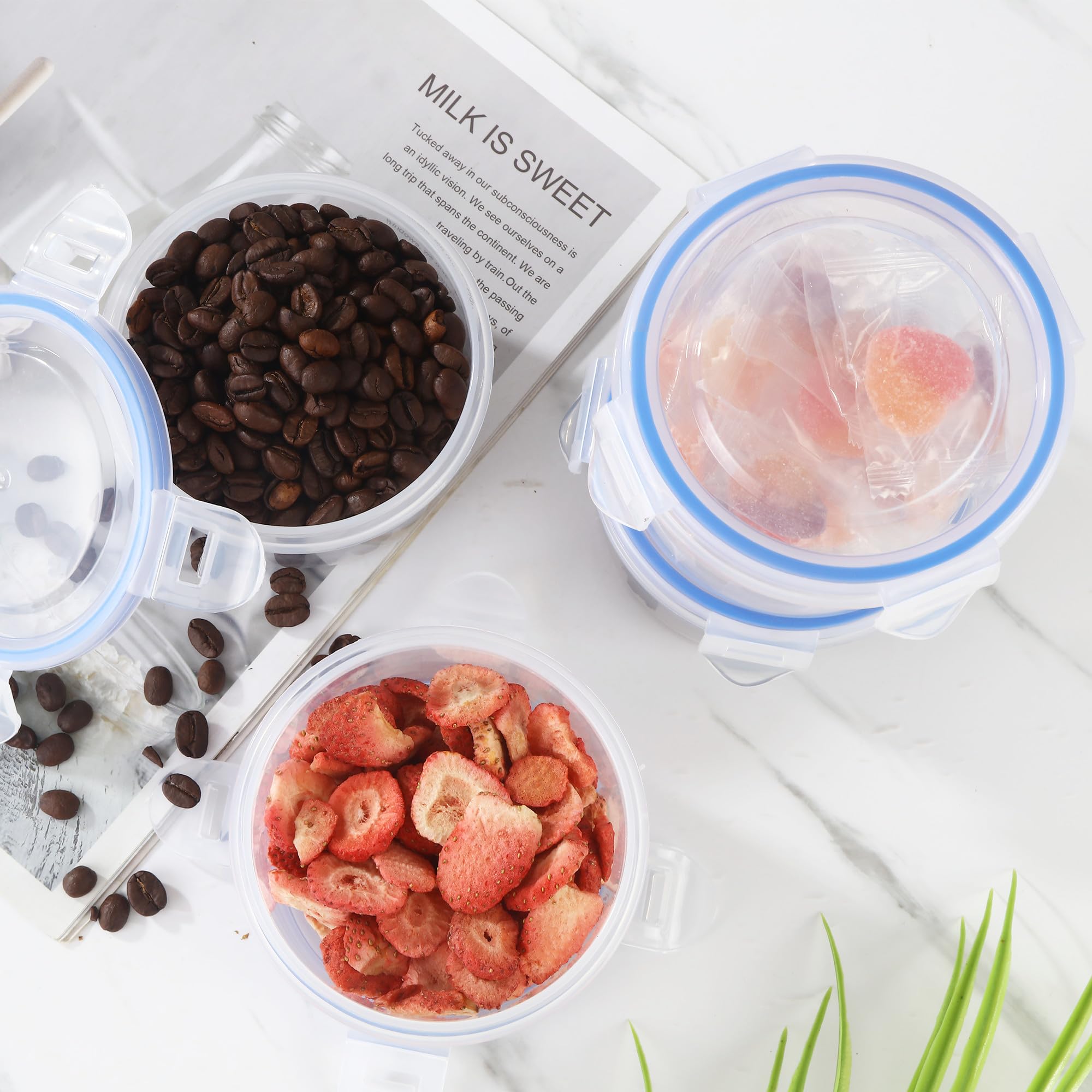Parfait pour les modes de vie occupés Ils passent également au lave-vaisselle pour un nettoyage facile. Les récipients alimentaires avec couvercles hermétiques garantissent une fraîcheur plus durable, ce qui les rend parfaits pour vos collations quotidiennes, restes et pots de yaourt avec couvercles. Ce lot de 6 boîtes est conçu pour garder vos aliments au sec et au frais, en les protégeant de l'humidité et des bactéries. Elles sont parfaites pour stocker des pâtes, de la farine, du sucre et bien d'autres produits alimentaires Que vous recherchiez des récipients en plastique avec couvercles, des récipients à collation avec couvercles ou des récipients à soupe, ces récipients offrent des solutions de rangement pratiques pour tous vos besoins alimentaires. Ils passent également au micro-ondes et au congélateur, parfaits pour les boîtes à déjeuner, les récipients de préparation des aliments avec couvercles ou les récipients de rangement avec couvercles qui peuvent supporter une variété de températures. Sécurité de qualité alimentaire : fabriqués en polypropylène de haute qualité, ces récipients sont non toxiques, sans BPA et de qualité alimentaire, offrant une solution de stockage sans produits chimiques qui préserve le goût et la fraîcheur de vos aliments. Les récipients alimentaires ronds avec couvercles sont fabriqués en plastique transparent sans BPA, permettant une identification facile du contenu sans les ouvrir. Lot de 6 boîtes de conservation de 300 ml - rondes - avec Le design hermétique et étanche garantit que vos aliments restent frais plus longtemps, ce qui les rend parfaits pour les pique-niques, les barbecues, les festivals, et plus encore. Passe au micro-ondes et au congélateur pour un confort ultime. Ces petits récipients avec couvercles passent également au lave-vaisselle pour un nettoyage facile, assurant Tupperware Rond Rangement Cuisine Lot 6 Boîtes Conservation 300ml Rondes - Hermétiques, Empilables, Plastique Alimentaire Récipients Plastique Transparent Boite Plastique Hermétique Sécurité hermétique et étanche : nos boîtes alimentaires disposent d'un système de verrouillage sécurisé à quatre boutons-pression et de couvercles scellés... Visibilité claire : fabriqués à partir de plastique transparent sans BPA, ces boîtes vous permettent d'identifier facilement le contenu sans les tracas de les ouvrir. Idéal pour organiser votre cuisine, réfrigérateur ou garde-manger, ils économisent de l'espace et offrent des conteneurs de rangement de cuisine efficaces pour garder votre maison bien rangée.