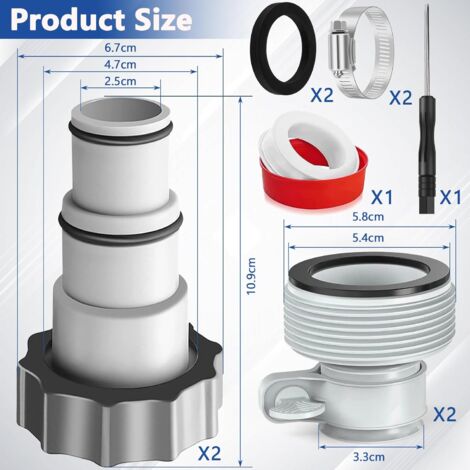 Dimensions de l'article (article unique) : Longueur : 10 cm., Largeur : 5,5 cm., Hauteur : 5,5 cm., Poids du produit :0., 03 kilogrammes Raccord de tuyau 32/38 mm x 50 mm avec collier de serrage en acier inoxydable. Tuyau Diamètre 32 Mm HAF® Raccord De Tuyau à Pression En PVC Avec Douille 32/38 Mm X Filetage Extérieur 1 1/2" - Douille En PVC Gris - Convient Pour Les Tuyaux De Piscine Collier De Serrage Piscine Bestway Idéal pour le raccordement d'un tuyau à un tuyau ou à une conduite d'eau de 50 mm. Montage facile et rapide grâce au collier de serrage en acier inoxydable inclus dans la livraison. Liaison, raccord 32/32, 38/38, 32/38 pour tuyau flottant de pisicne - Blanc - Linxor Convient aussi bien pour la construction de piscines, d'étangs et de piscines que pour l'aquariophilie, les eaux usées ou tous les systèmes d'irrigation. Le guide ultime pour réparer un tuyau d'arrosage percé Il suffit de glisser l'extrémité du tuyau sur le connecteur et de le fixer à l'aide du collier de serrage Domaine d'utilisation : construction de piscines, bassins et piscines, pompes de filtre à sable, aspirateur de piscine, aquariophilie et tous les systèmes d'irrigation Haute résistance (chlore, eau, huiles). HAF® Raccord de tuyau en T de 38 mm avec 3 colliers de serrage en acier inoxydable pour la construction de piscines, d'étangs et de piscines et tous les... Nous vous proposons un choix varié d 1 collier de serrage en acier inoxydable 32-50 mm. Résiste aux températures de 0 °C à 100 °C.