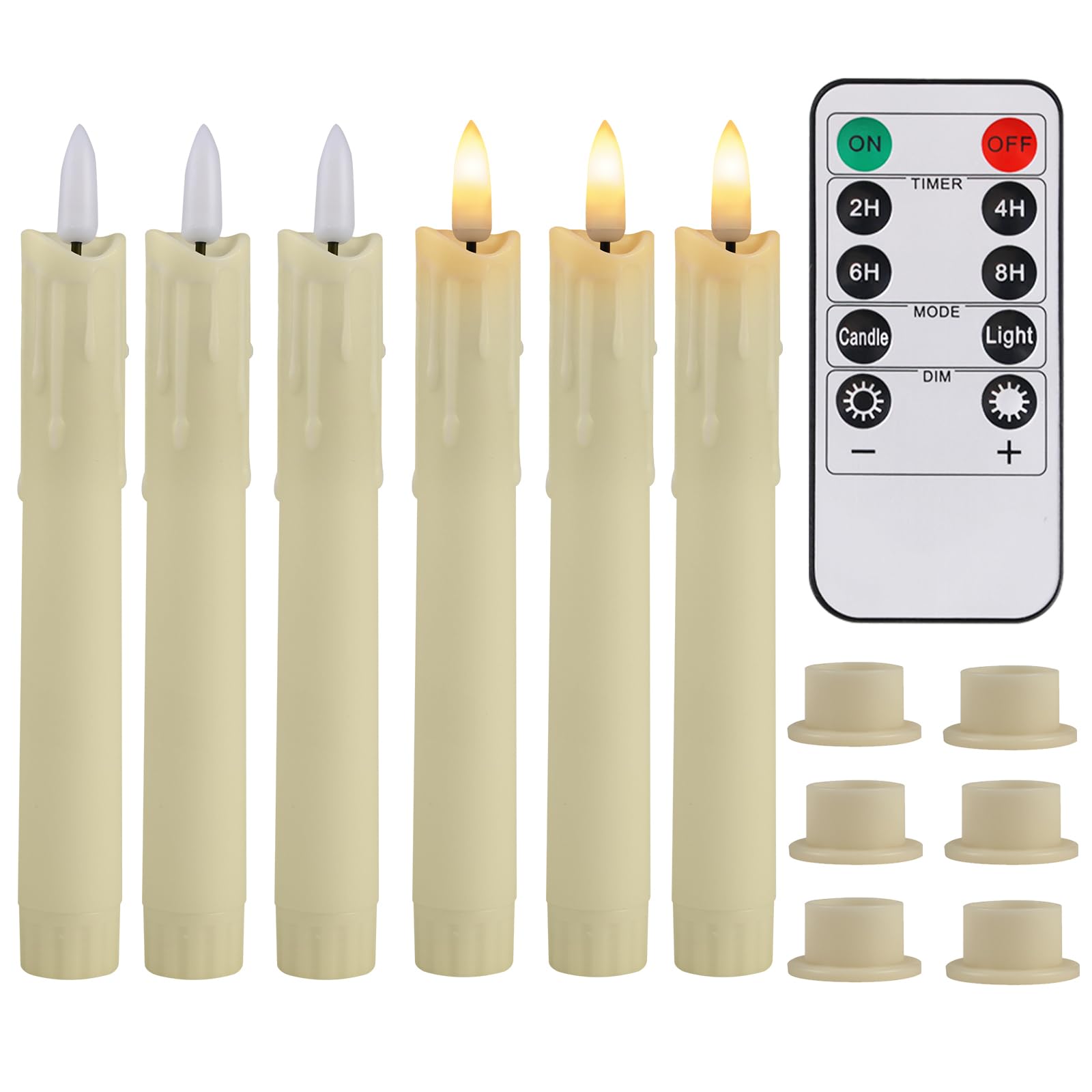 Personnalisez votre ambiance avec des modes d'éclairage et de luminosité réglables. Contenu de l'emballage : Lot de 6 Usages multiples : Ces bougies LED semblables à des vraies créent une lumière chaleureuse et scintillante, parfaites pour la salle à manger, les cérémonies religieuses, les fêtes d'anniversaire, les mariages, pour habiller votre cheminée, ou encore vos décorations de Noël et d'Halloween Éclairage élégant et raffiné : nos bougies coniques à LED minces, de 1,8 cm de diamètre et 16,8 cm de hauteur, sont conçues pour s'adapter parfaitement aux bougeoirs ou aux chandeliers. Caractéristiques du produit : Éclairage élégant et raffiné : nos bougies coniques à DEL minces, de 1,8 cm de diamètre et 16,8 cm de hauteur, sont conçues pour s'adapter parfaitement aux bougeoirs ou aux chandeliers. Ambiance sans tracas et sûre : profitez du charme des bougies sans le désordre de la cire qui coule ou le danger des flammes nues. NAKIHOUSE Lot de 6 bougies vacillantes sans flamme, fonctionnant à piles, durables, aspect réaliste, piles remplaçables, offrent une esthétique et une ambiance uniques pour votre décoration d'intérieur Caractéristiques du produit : Matériau : LED + polypropylène. Amplifiez la sophistication de votre table à manger, mariage ou événement formel avec leur présence majestueuse Commodité à distance et bonheur chronométré : contrôlez vos bougies LED sans problème avec une télécommande à 10 touches. Lot de 12 pcs Bougies LED sans Flae avec inuteur, Jaune chaud LED... Scintillement authentique et lueur chaude : conçues pour imiter le véritable scintillement des bougies traditionnelles, nos bougies sans flamme disposent d'une mèche noire avec une flamme 3D réaliste. NAKIHOUSE Lot De 6 Bougies à Piles Avec Minuteur, LED Blanc Chaud, Sans Flamme, Avec Mèche 3D, Fausses Bougies à Piles Pour Halloween, Noël, Mariage (ivoire, 1,8 X 17,8 Cm Scintillement authentique et lueur chaude : conçues pour imiter le véritable scintillement des bougies traditionnelles, nos bougies coniques sans flamme disposent d'une mèche noire avec une flamme 3D réaliste. Couleur de la lumière : blanc chaud., Couleur : blanc, ivoire., Dimensions : 1,8 x 16,6 cm. Nos fausses bougies sûres et sans fumée sont parfaites pour les ménages avec des enfants ou des animaux domestiques, assurant un environnement sans souci pour la détente. Amplifiez la sophistication de votre table à manger, mariage ou événement formel avec leur présence majestueuse. Lot de 6 bougies LED sans flamme (D : 7 x H