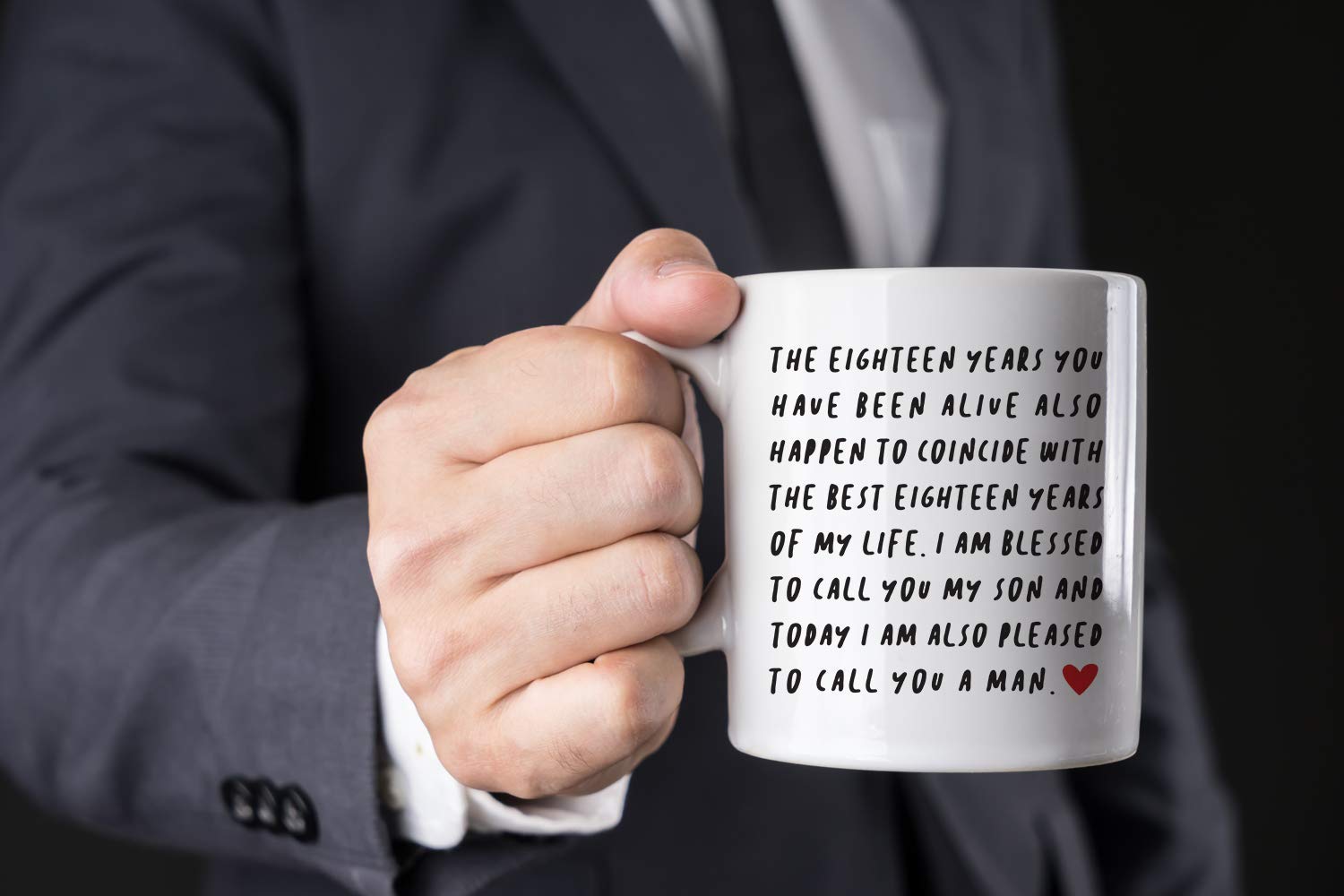 Un beau cadeau pour les anniversaires masculins Tasse en céramique de 325 ml, blanc brillant, idéal pour toute boisson chaude. Tasse à Café Carrée Pour Fils De 18 Ans - Cadeau D'anniversaire Pour Impression double face, facile à nettoyer. Offrez un joli mug spécial anniversaire en céramique avec photo et textes à personnaliser; Rendez ce mug unique pour une personne qui souffle ses bougies... Poignée simple à prendre en main et base stable pour siroter agréablement., Double face. Mug et tasse anniversaire 18 ans, Made in France ! Cadeau et idée cadeau anniversaire pour homme de 18 ans Tasse en céramique brillante de 325 ml, idéale pour toutes les boissons chaudes et froides. Poignée facile à prendre en main et base stable pour siroter agréablement.