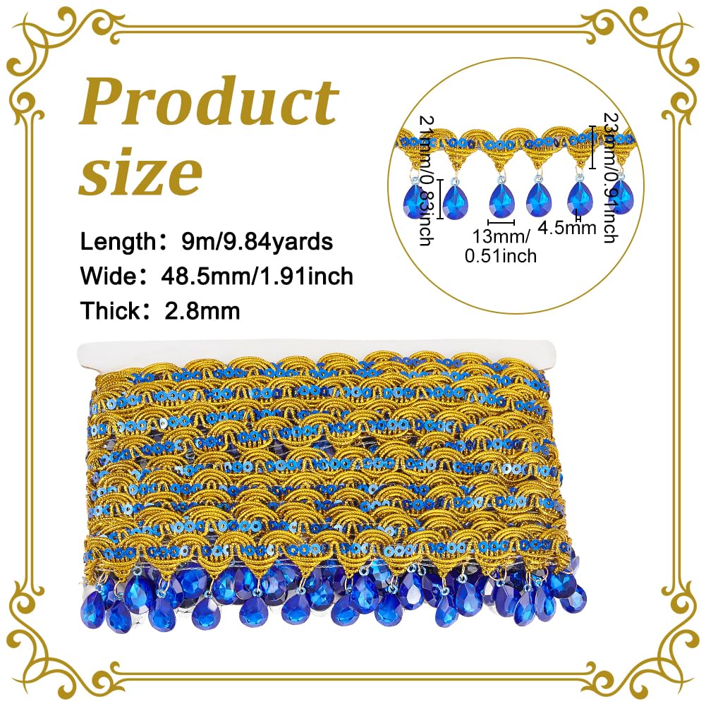 FINGERINSPIRE 9mx48.5mm Perles Suspendues Frange Dentelle Argent Paillettes Ruban Avec Argent Strass Frange Garniture Polyester Couture Frange Gland Garniture à Franges Cousue Bricolage Pour Costume Emballage et taille : vous recevrez une jolie dentelle à franges d'environ 9 m de long., , 48., 5mm de large et 2., 8mm d'épaisseur. Ruban strass brillant : notre beau ruban brillant a une couleur dorée brillante et l'ensemble du ruban est un motif de tissage en arc., ., Notre ruban a des paillettes dorées et des fils sur le dessus tandis que les lignes de pêche sont fixées à l'arrière et il y a des strass acryliques colorés qui pendent en dessous., ., Notre ruban sera une décoration brillante et brillante pour vous. Facile à utiliser : vous pouvez couper facilement le ruban à la longueur que vous souhaitez. Notre ruban peut être cousu à la main ou à la machine à coudre. Parce qu'il est étroitement cousu, il peut donc être coupé à la fin et ensuite vous avez besoin d'un briquet pour brûler ou coudre pour fixer Tissu,Pom Poms garniture boule ruban de dentelle Pom Poms frange ruban... Parce qu'il est bien cousu, il peut donc être coupé à la fin et vous avez ensuite besoin d'un briquet pour brûler ou de coudre pour réparer. FINGERINSPIRE Ruban à franges à paillettes argentées de 9 Largement utilisé : le ruban élégant convient à différents types de costumes de fête. durable, solide et avec une bonne résistance à l'usure. Matériau de qualité : ce ruban tissé est fabriqué en polyester de haute qualité qui est lisse. pour la décoration de la maison. Cela vous suffira à utiliser au quotidien pour décorer votre maison et vos vêtements.