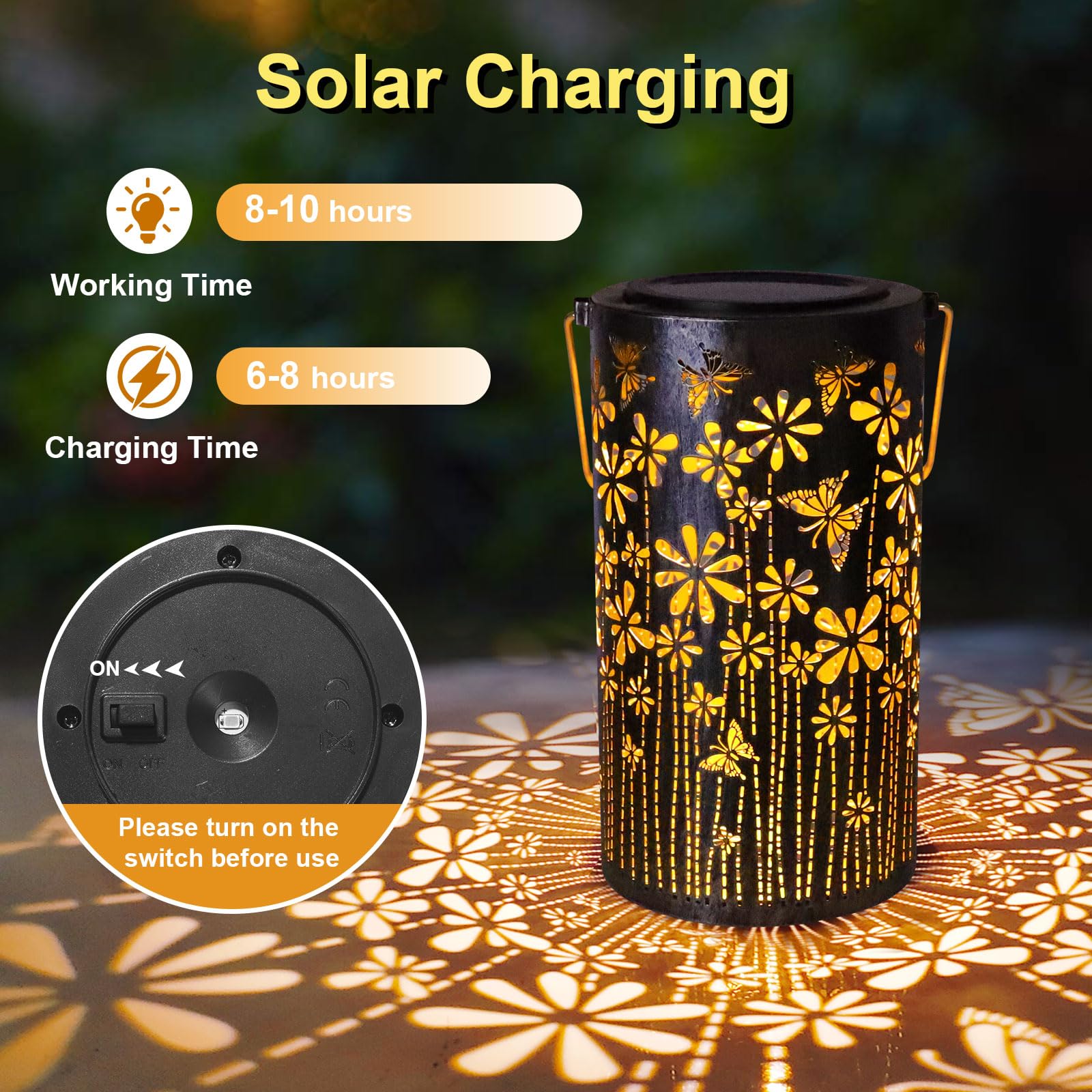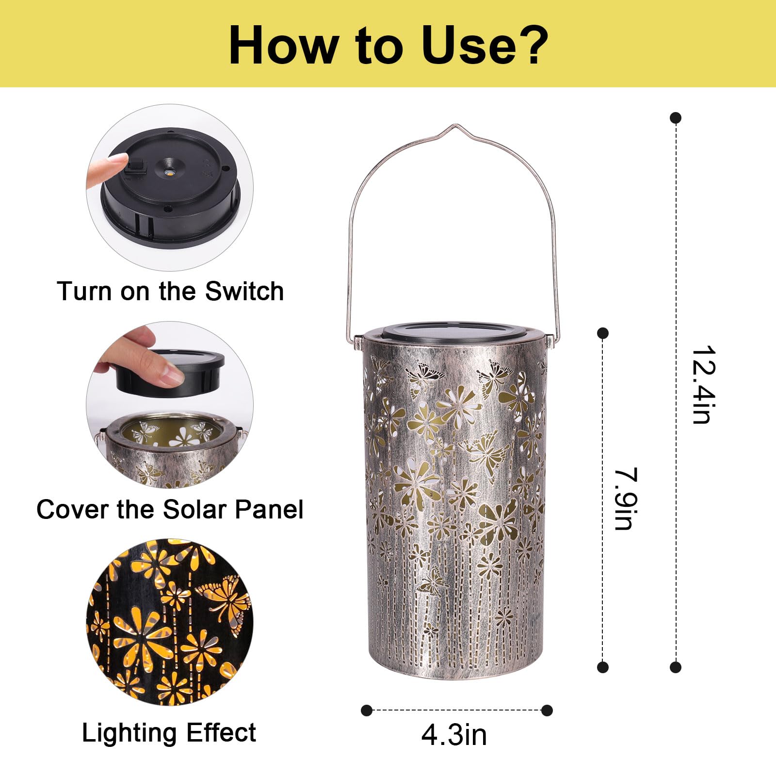 MIFXIN Lanterne solaire de jardin en métal avec crochet de berger, lumière LED étanche pour table, terrasse, balcon, cour (bronze) Lanterne solaire pour pierre tombale | Vitrine Magique Lape Solaire Exterieur Jardin Suspendue, Collasis IP65 Étanche... C'est une décoration parfaite pour le jardin, la cour, le porche, l'allée, la terrasse, le balcon et la terrasse. Laissez-les décorer votre jardin, cour, chemin et rendre votre jardin plus étincelant. Design exquis : cette lampe de jardin dispose d'un savoir-faire creux exquis et d'un style décoratif rétro. Fonction imperméable : conçues avec des matériaux imperméables, les lanternes solaires peuvent décorer votre jardin normalement même les jours de pluie. Cadeau idéal pour tout le monde : cette lampe solaire suspendue est un cadeau parfait pour toutes les occasions, y compris les vacances et les fêtes (comme la fête des mères, la fête des pères, un anniversaire, Thanksgiving, Noël). Après la charge, il peut éclairer dans l'obscurité pendant 8 à 10 heures (il suffit d'allumer l'interrupteur). Décorations extérieures parfaites : avec les accessoires de crochet de berger, vous pouvez accrocher la lampe de jardin ou l'accrocher à un arbre ou un poteau sur une allée de jardin. Décorations d'extérieur parfaites et cadeaux de jardinage : vous pouvez l'accrocher à un arbre ou le placer sur la table ou sur le sol. Cette lanterne solaire à... MIFXIN Lanterne Solaire En Forme De Papillon, Cadeau D'anniversaire Pour Femme, Lanternes Solaires En Métal, Décoration De Jardin, Cadeau Pour Maman, Grand-mère, Lampe LED étanche à Suspendre Pour Que ce soit un cadeau pour maman, grand-mère, femme, papa, grand-père, homme, ou même une surprise pour vous-même ou votre amoureux, c'est un choix attentionné.