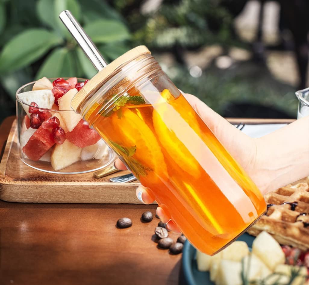 Lot de 2 tasses à boire avec paille, Lre Co. tasse à thé à bulles 730 ml tasses avec 2 Mug Bubble Tea ALINK Lot De 2 Tasses à Thé Réutilisables Boba Cup,680.4 G Bubble Tea Kit Convient pour le th boba, le th bulles, les smoothies ou d'autres boissons que vous aimez. Matériaux sûrs et fiables : le gobelet Mason Jar est fabriqué en verre de haute qualité, avec des couvercles en plastique de qualité alimentaire et des pailles en acier inoxydable 304., Sans BPA ni PVC, sûr, réutilisable et respecux de l'environnement. Avec la paille, vous pouvez profiter de l'heure boire avec l gance tout moment et n'importe o . Vous pouvez facilement utiliser ce gobelet en verre pour le combiner avec différents accessoires pour répondre à vos différents besoins. En utilisant la brosse de nettoyage, vous pouvez facilement nettoyer les longues pailles sans aucune diffité. boissons à thé à bulles Paille large coudée de taille Boba, facile à siroter des perles de tapioca de grande taille. La paroi int rieure lisse n'absorbe pas les aliments ou les pigments. milkshake smoothie Le verre transparent permet de montrer les couleurs vives du jus. Largement utilisé : la tasse à thé à bulles réutilisable avec paille est parfaite pour les conserves, les conserves, les fèves, les gelées ou le miel, les smoothies, etc. verres à cocktail Convient pour la confiture, la gelée, le miel ou la mélasse, le miel, les cocktails, le café, le thé au lait, les jus, les fruits en conserve. Cristal mais fonctionnel et élégant. Tasse à thé au lait Tient parfaitement dans la main et les porte-gobelets de voiture standard Facile à nettoyer : le design à large ouverture rend le gobelet Mason Jar facile à nettoyer. Description du produit Lot de 2 tasses en verre avec couvercles en bambou et pailles, tasse de voyage Boba de 680,4 g pour thé aux bulles. N'hésitez pas à utiliser notre tasse à smoothie Boba pour stocker des aliments et des boissons. Remarque : Après avoir bu des boissons froides, ne buvez pas de boisson chaude immédiatement. Tasse à smoothie Les bocaux sont parfaits pour stocker des smoothies, de l'eau détoxifiante, des laits de noix et des boissons protéinées. La structure en verre garde les milkshakes, jus et smoothies frais et frais. Jus de fruits Le lot de bouteilles en verre parfait pour faire des jus faits maison. Contenu de l'emballage : Ce lot est livré avec une tasse Boba à large ouverture de 680,4 g, 2 couvercles en bois, 2 pailles en acier inoxydable, 1 brosse éponge, 1 brosse à paille. Tasses à café glacé Idéal pour stocker diverses boissons La construction en verre garde les jus et les smoothies froids et frais. Et la paroi intérieure lisse n'absorbera pas les aliments ou les pigments. Présentation du produit ALINK Lot de 2 tasses à thé réutilisables Boba Cup,680.4 g,Large ouverture,Avec couvercle, manchon en silicone et pailles larges3 L'article comprend : 2 bocaux en verre diamant réutilisables solides de 680,4 g, 2 couvercles anti-fuite, 2 pailles larges réutilisables en acier inoxydable, 1 nettoyeur de paille, 1 brosse éponge, 2 étuis en silicone, le tout...