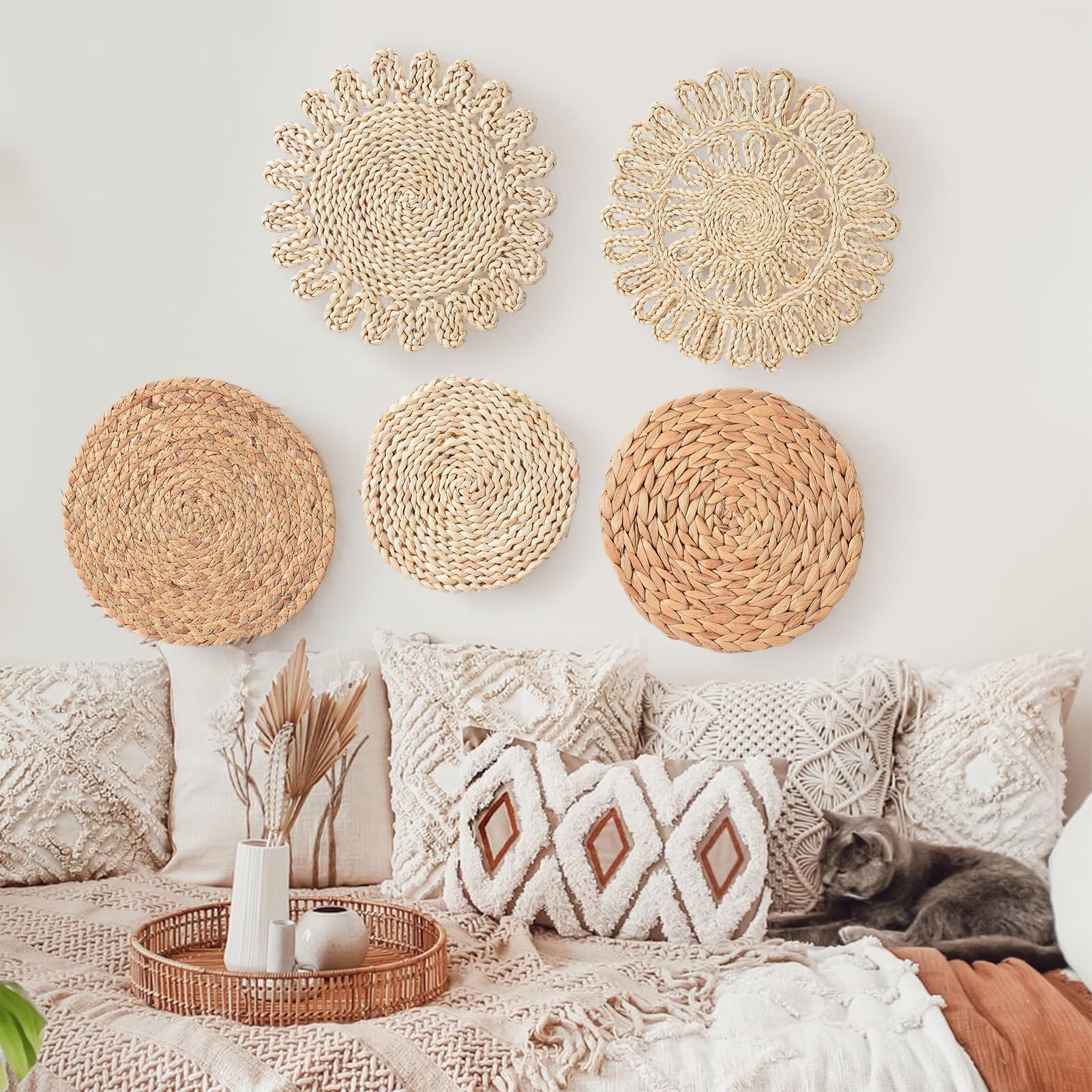 Accent mural accrocheur : chacun des paniers tissés décoratifs a une beauté unique qui ajouterait différentes ambiances à une pièce et créerait une belle œuvre d'art sur votre mur ! De plus, ne les plongez pas et ne les lavez pas directement avec même un peu d’eau chaude. Comment intégrer le rotin dans votre intérieur : Idées et conseils de Paniers muraux en rotin | révélé, brocante, art & déco responsable AVIS : Vérifiez attentivement ces tailles (diamètre 20,5/25,5/30,5 cm) et veuillez tenir compte de légères variations dues à la nature artisanale de ces produits. Décoration Murale En Rotin, Assiettes De Décoration Murale Tissées à Suspendre, Style Bohème, Paniers Muraux Tissés, Assiette De Fruits Ronde, Plateau Mural En Osier Pour La Maison(#3 Respectueux de l'environnement et de haute qualité : jonc de mer et entièrement tissé par des mains d'artisans habiles pour garantir une haute qualité de produit. Les paniers tissés sont des compléments parfaits au patio, au jardin, au balcon, aux salons, aux chambres, au couloir, à la galerie, etc. IDÉE DE DÉCO EXCEPTIONNELLE : Ces paniers peuvent ravir vos murs et se fixer avec la plupart des éléments vintage comme Boho. Tapisserie Murale en Macramé à Plumes Style BohèMe Chic Faite à la Main...