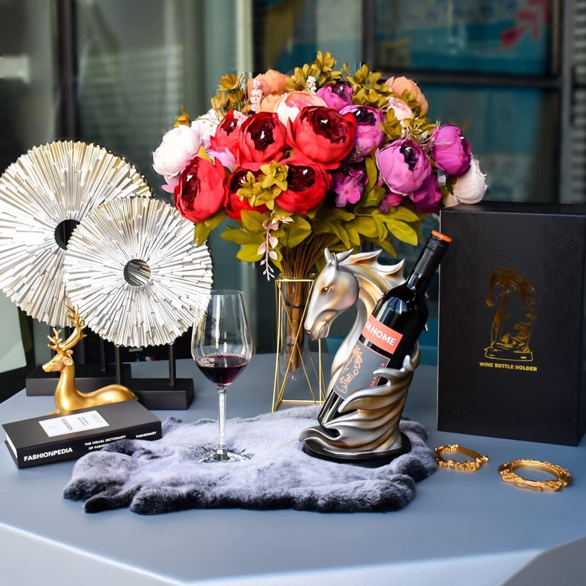 【Apparence exquise】: Ce casier à vin à tête de cheval a une surface brillante et une excellente texture. Il est adapté pour les chambres, salons, cuisines, hôtels, restaurants, bureaux, bars, mariages, fêtes et autres endroits. Ce n'est pas seulement un casier à vin, mais aussi une œuvre d'art., Venez l'acheter. Procédé : peinture par pulvérisation Couleur : bleu + or / argent + or / rouge cuivre Style : moderne Assemblage requis : non Type de support : plateau de table Diamètre de bouteille de vin approprié : intérieur 7,2 cm Dimensions totales du produit (Ø x H) : 17 x 30 cm Poids net : 1 kg., Remarques : 1., Veuillez noter que ce produit ne contient pas de bouteilles de vin, de verres et d'autres décorations., 2., Les mesures étant prises à la main, les tailles indiquées peuvent varier de 1 à 3 cm. En outre, les chevaux symbolisent le talent et la majesté, c'est donc aussi une inspiration ou un esprit. Utilisation : Ce produit peut être utilisé pour ranger des bouteilles de vin, des verres à vin, des décorations, etc. YINGAVERSAI Porte-bouteille de vin - Statue de cheval de table - Organisateur de rangement décoratif pour la maison, la cuisine, la cave à vin - Décoration... Description : Ce porte-bouteille de vin est fabriqué en résine de haute qualité et donc très durable. Il peut également être placé sur le plan de travail pour la décoration. 【Support d'affichage multifonction】 : en plus de sa fonction de support de bouteille de vin, cet ornement peut également être utilisé comme support d'affichage. Support bouteille de vin en fer à cheval fait main La surface lisse et la structure simple vous permettent d'enlever facilement la poussière avec un chiffon (non inclus). Porte Bouteille Vin Decoratif Porte-Bouteille De Vin Casier À Vin Statue De Cheval De Table Support De Bouteille Pour Table 【Matériau de haute qualité】: Il est fabriqué en résine de haute qualité et respectueuse de l'environnement avec un procédé de peinture par pulvérisation, qui est résistant à l'usure, résistant à la corrosion, résistant aux hautes et basses températures, robuste et durable. Vous pouvez y exposer d'autres petites décorations, artisanat ou objets décoratifs pour obtenir un effet décoratif. Détails : Surface lisse : les bords lisses augmentent non seulement la beauté du produit, mais améliorent également la sécurité d'utilisation. Une œuvre d'art : correspondance des couleurs de haute qualité, réalisée en résine coulée à froid, polie à la main. Le design unique et innovant du casier à vin... La couleur de haute qualité et le design unique et innovant en font un cadeau idéal pour la famille, les amis et plus encore.