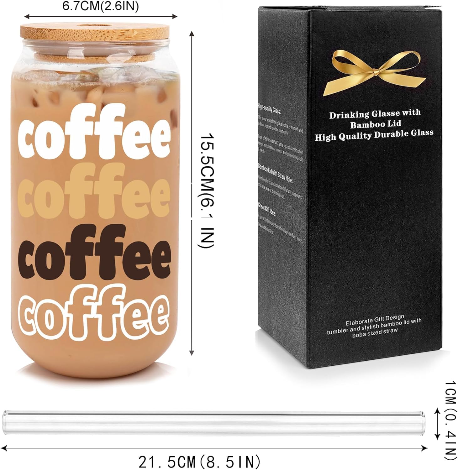 Caractéristiques : jolie tasse à fleurs sauvages tendance et élégante avec couvercle en bambou, pailles en verre, réutilisables et respectueuses de l'environnement ANOTION Wildflower : Tasses en Verre Élégantes ANOTION Wildflower, un ensemble de tasses en verre uniques, combine style et fonctionnalité. Avec leurs motifs de fleurs sauvages blanches, ces gobelets ajoutent une touche de sophistication à votre collection de boissons. Profitez d’un design élégant tout en savourant vos boissons préférées. Ensemble Complet Inclus Recevez deux tasses... Portable à transporter dans un sac ou une voiture pour les voyages, l'école, le bureau, le travail, le shopping, le pique-nique, etc. Ensemble complet avec couvercle et paille - Cette tasse à café glacée est non seulement élégante mais aussi pratique. Ce couvercle en verre de bambou est fabriqué en matériau naturel pur. Le plastique nuit maintenant à notre planète de plus de façons que nous ne pouvons l'imaginer. Ce bocal en verre réutilisable de 591 ml est conçu pour votre commodité et vise à aider la Terre. 500 millions de pailles en plastique sont utilisées par jour rien qu'en Amérique du Nord. Utilisation polyvalente : ces jolies tasses en verre avec motifs floraux sont parfaites pour profiter de vos smoothies, cafés glacés et boissons préférés à la maison ou en déplacement. Si vous rencontrez des problèmes de qualité du produit, veuillez nous contacter et nous vous fournirons une solution parfaite. Fonctionne comme bouteille d'eau quotidienne et bocaux pour les perles, le thé à bulles, l'eau, les smoothies, le café glacé, les jus, les milkshakes, etc. Bubble Tea Cup ANOTION Tasses à Café Floral, Bocaux Mason Avec Couvercles Et Pailles En Verre Avec Couvercle En Bambou Et Fleurs Sauvages - Tasse à Café Glacée - Cadeau Pour Femme, Sœur, Maman Accessoire Stanley Cup Service après-vente sans soucis : afin de garder le motif du corps de la tasse plus longtemps, il est recommandé de le laver à la main à température ambiante ou à l'eau froide. ANOTION Tasses à café floral, bocaux Mason avec couvercles Il comprend un couvercle et une paille, ce qui en fait un compagnon idéal pour un usage quotidien. Ils sont livrés par lot de deux, de sorte que vous pouvez les partager avec vos proches ou avoir une tasse de rechange pour vous-même. Les couvercles et les pailles en bambou ajoutent une touche naturelle et respectueuse de l'environnement, tandis que les motifs uniques de fleurs sauvages apportent une touche de fantaisie à votre collection de boissons. En utilisant la brosse de nettoyage, vous pouvez facilement nettoyer les longues pailles sans aucune difficulté. Design•aster Lot de 4 tasses en verre de qualité supérieure avec...