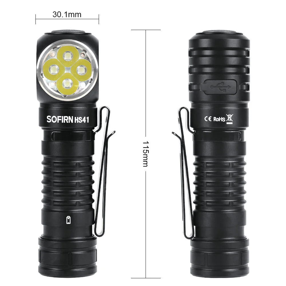 Lampe frontale Sofirn HS41 avec 4000 lumens Lampe frontale 4000 lumens avec capuchon arrière magnétique Chargement USB C et autonomie ultra longue : cette lampe de poche haute luminosité est équipée d'un port de type C intégré, ce qui lui permet d'être complètement chargée en seulement 2,5 heures. Contenu : 1 lampe frontale puissante, 1 batterie, 1 câble de charge, 1 manuel (français non garanti). Lampes Frontales 77outdoor Sofirn HS41 Lampe Frontale Rechargeable 4000 Lumens LED Lampe Frontale Led Ultra Puissante Design réaliste : cette lampe de poche LED dispose d'un indice d'étanchéité IPX8 et peut supporter des impacts jusqu'à 1 mètre, ce qui la rend idéale pour une utilisation dans des conditions de pluie et assure un éclairage fiable à tout moment. Plus qu'une lampe frontale : avec son design unique en forme de L à 90 degrés, cette lampe frontale rechargeable peut fonctionner comme une lampe de poche à angle droit, ce qui en fait un outil polyvalent pour diverses applications. En outre, il dispose d'une technologie avancée de régulation de la température et d'une protection basse tension pour plus de sécurité. En outre, cette lampe frontale dispose d'un accès rapide aux modes Moonlight, High, et Strobe pour plus de commodité. Avec une seule charge, il peut fournir jusqu'à 29,5 jours d'utilisation prolongée en mode clair de lune. Haute luminosité. Avec 4000 lumens, cette lampe frontale offre une luminosité exceptionnelle, assurant une visibilité claire pendant le camping nocturne ou les... Lumineux et clair, le HS41 est sûr d'améliorer votre expérience de plein air.
