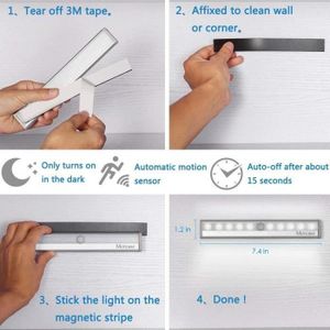 Son design moderne complète les zones comme les escaliers, les balcons et les buanderies, offrant à la fois style et fonction comme lampe à détecteur de mouvement pour l'intérieur Detecteur De Mouvement Homelist Lot De 6 Veilleuses à Détecteur De Mouvement D'intérieur Lampe Detecteur De Mouvement Interieur Cette lumière de palet rechargeable dispose d'une luminosité réglable avec une longue pression sur le bouton, et le changement entre les modes est facile avec une courte pression sur le bouton « M ». Cette lampe polyvalente et rechargeable à détecteur de mouvement dispose d'un design élégant et rond, ce qui la rend idéale pour les petits espaces tels que les placards, les balcons, les escaliers, les portes et les buanderies. Équipé d'une batterie rechargeable de 1500 mAh, éliminant la besoin d'une charge équente, économie d'énergie et protection de l'environnement Contenu de l'emballage : 2 veilleuses à détecteur de mouvement, 2 câbles de charge USB (50 cm de longueur), 6 disques métalliques adhésifs et 2 manuels du produit (français non garanti) Pour une performance optimale, évitez de les stocker en plein soleil ou dans des environnements très humides, et n'oubliez pas de recharger les lumières tous les 3 mois si vous ne vous en servez pas. Éclairage polyvalent : offre à la fois un détecteur de mouvement et un mode constant, avec un capteur avancé détectant le mouvement dans une portée de 4 m... Avec un design compact (8 x 2,4 cm), cette lampe s'adapte parfaitement aux espaces restreints, ce qui en fait une excellente solution comme lampe pour placard sans prise de courant ou de placard sans fil. Avec détecteur de mouvement et modes constants, il détecte les mouvements dans une portée de 4 m et un angle de 120°, améliorant la sécurité et la commodité. landgoo Lot de 2 veilleuses à détecteur de mouvement Alimenté par une batterie de 750 mAh, il offre jusqu'à 8 heures d'éclairage sur une charge complète et se recharge en seulement 2 à 2,5 heures via un port de charge de type C, ce qui en fait le parfait compagnon de voyage rechargeable en intérieur ou intelligent. Le pack comprend 2 veilleuses à détecteur de mouvement, 2 câbles de charge USB (50 cm chacun), 6 disques métalliques adhésifs et 2 manuels du produit. En outre, il sert de lumière à capteur automatique, offrant à la fois fonctionnalité et style. Longue durée de vie de la batterie : alimentée par une batterie de 750 mAh, cette petite lumière fournit jusqu'à 8 heures d'éclairage sur une charge complète, et est rechargée via le port de charge USB-C universel en 2 à 2,5 heures, pratique comme veilleuse sans prise ou veilleuse de voyage Compact et élégant : avec une épaisseur de 2,4 cm et un diamètre de 8 cm, cette lampe s'adapte parfaitement aux espaces restreints.