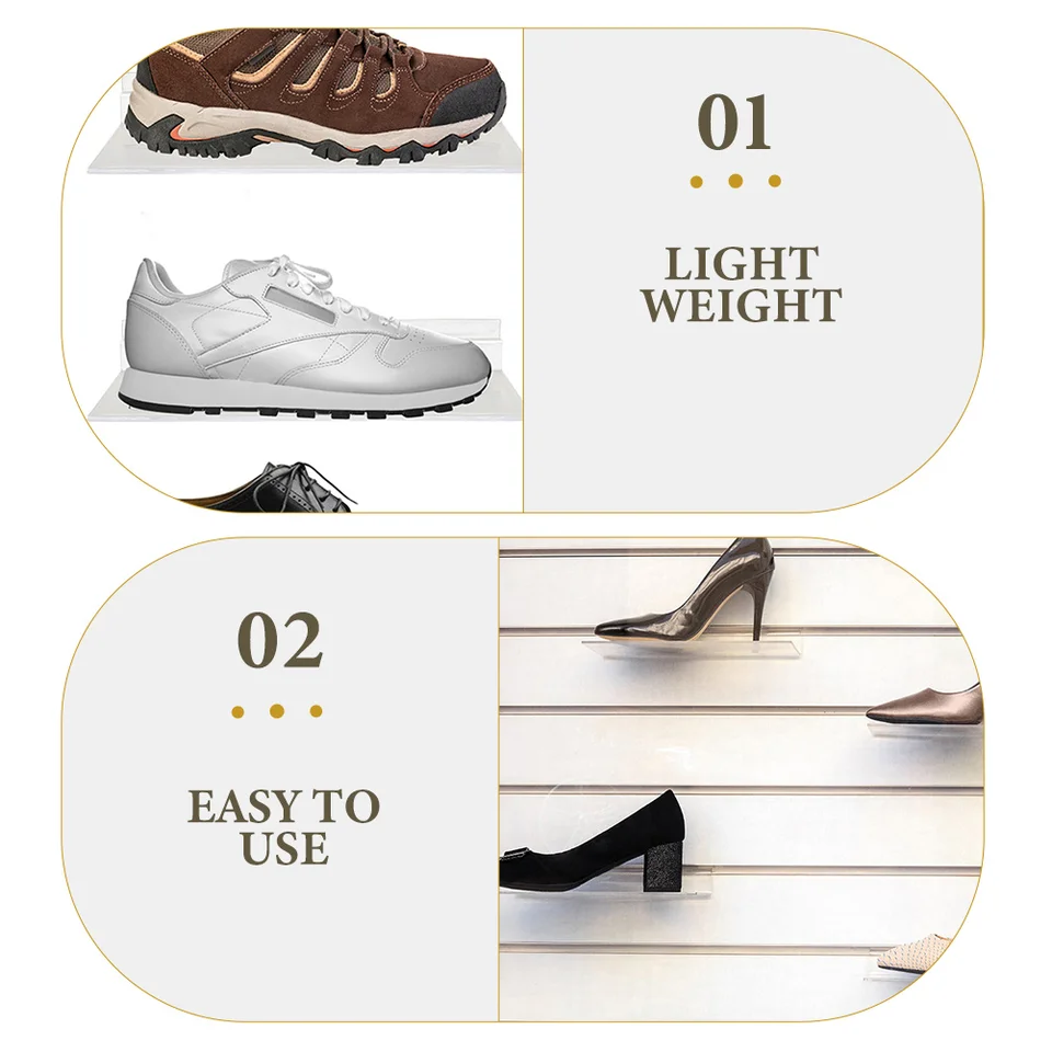 Cabilock 16 Pièces Étagère à Chaussures Transparente étagère Étagère à chaussures en acrylique transparent pour Slatwall 4"D X 10"L avec support de panneau 1",Trouvez les Détails et le Prix sur Présentoir de vente au détail, pied à chaussures en acrylique de Étagère à chaussures en acrylique transparent pour Slatwall 4"D X 10"L avec support de panneau 1" - Foshan Besto Display Co., Ltd. HAUTE QUALITÉ : L'étagère murale flottante pour chaussures est fabriquée en acrylique transparent de haute qualité qui est durable, bien fait et bien arrondi. Même les grosses chaussures ne casseront pas notre étagère à chaussures principalement utilisées pour exposer des chaussures,adaptées aux centres commerciaux, supermarchés, maisons, vitrines, etc. Boîte À Chaussures Épaissie, Boîte À Chaussures Transparente Boîte À Chaussures En Plastique... étagère Chaussures Boîte à Chaussures Transparente Boîte De Rangement Pour Chaussures En Plastique Pliable étagère Chaussures La Redoute fabriquée en matière plastique et avec une finition soignée, vous offre une excellente expérience d'utilisation. faciles et pratiques à installer et à utiliser, elles peuvent afficher efficacement les chaussures en magasin.