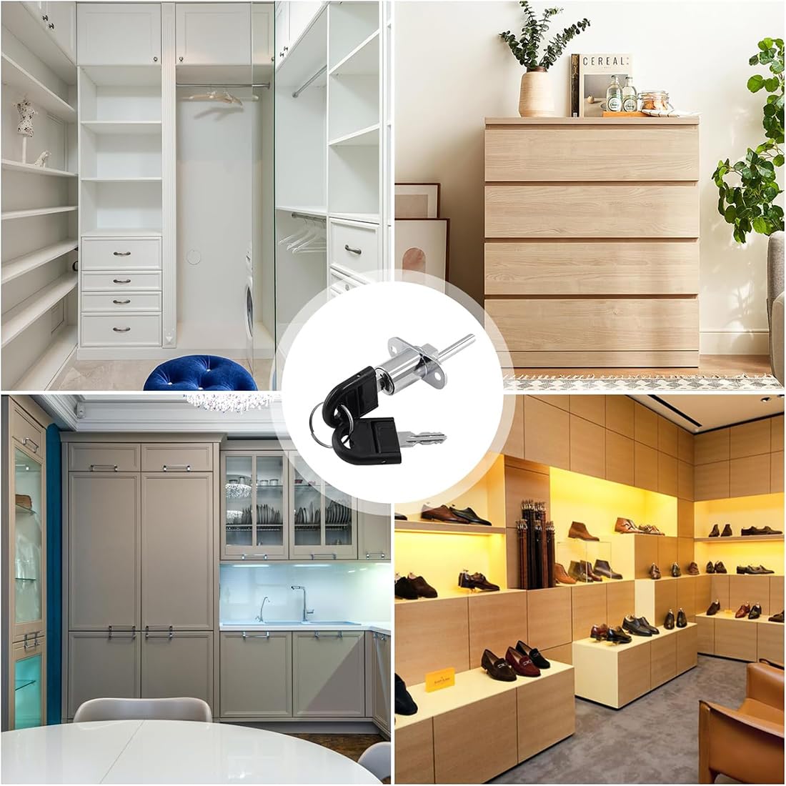 La serrure à tiroir avec clé est conçue pour offrir une sécurité optimale pour le rangement d'objets de petite taille. Fabriquée en alliage de zinc de haute qualité, elle est résistante à la corrosion et à la rouille, tout en étant compacte et durable VZUHSW Serrure de tiroir pour meubles avec clé, idéale pour classeurs, armoires et vitrines, Diamètre de 16 mm, fonctionne avec un mécanisme à piston, poussoir avec clé, Disponible en argent, 1 pièce Idéal pour les tiroirs, boîtes aux lettres, armoires et bureaux. Serrure d'armoire à tiroirs, clé différente, cylindre 16 mm x 20 mm, 6 pièces Verrou Porte Placard Serrure De Tiroir Pour Meubles Avec Clé Idéale Pour Classeurs Verrou Placard Convient pour sécuriser trois tiroirs simultanément. Chaque serrure est accompagnée de deux clés pour plus de commodité et de sécurité. Matériau résistant à la décoloration assurant une longévité accrue. Construction intégrale, résistante à la rupture et au desserrage. Parfait pour remplacer les serrures endommagées sur divers meubles tels que bureaux et vitrines. Serrure universelle pour une utilisation à gauche, à droite et dans un tiroir VZUHSW Serrure de tiroir pour meubles avec clé, idéale pour classeurs, armoires et... Fabriqué en alliage de haute qualité avec une surface plaquée zinc, garantissant une utilisation sans rouille, durable et une longue durée de vie.