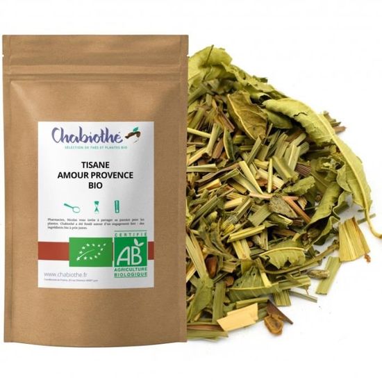 Tisane Bio Acheter Votre Tisane Amour De Provence Bio Saveur Romarin Thym Et Citron Tisane Pissenlit Description du produit Ingrédients : citronnelle, romarin, thym, lavande, verveine, huile essentielle de citron et de citron vert (100% issu de l'agriculture biologique et 70% de plantes origine France). Ingrédients Ingrédients : Citronnelle, cannelle, verveine, romarin, thym, feuilles d'olivier, arôme naturel, lavande, fleurs de tilleul. Cette infusion bio en vrac évoque les parfums du sud de la France. Riche en goût, thym, romarin et citronnelle mais également plein de vertus santé Amour provence tisane 100g - Herboristerie de Saint-Jean - Vieux Lyon... Conditionnées en sachet BIODEGRADABLE refermable de 200 grammes permettant d'optimiser la conservation et de préserver au mieux la qualité Infusion de Thym Bio - Origine France - tisane vrac 200g ou 2 kg Les produits Chabiothé sont certifiés Bio par Ecocert France - Produit conditionné à Lyon et soigneusement sélectionné Tisane Amour Provence Bio 200g Garder hors de portée des enfants. Accueil . Vendu en sachet zip de 200 grammes doublé en aluminium pour une parfaite conservation.