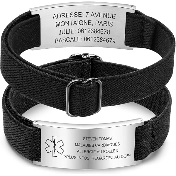Bracelet Silicone Alerte Médicale Personnalisable - Gravure Pourquoi acheter chez nous? Gravure au laser gratuite de première qualité: lettrage en gras et contrasté Comprend une carte médicale d'urgence gratuite avec pochette Comprend un coffret cadeau de qualité supérieure Carte médicale d'urgence La carte médicale d'urgence dispose de plusieurs salles pour les informations personnelles, les conditions médicales, les médicaments, les contacts d'urgence et les allergies. ◆ MOWOM Medical ◆ Les bijoux MOWOM Medical ID sont destinés aux personnes ayant des problèmes médicaux cachés tels que le diabète, l'épilepsie, l'asthme, l'hypothyroïdie, les problèmes cardiaques, les allergies, le lymphoedème, etc. ★ SAUVEZ DES VIES EN CAS D'URGENCE - Les personnes atteintes des conditions suivantes doivent porter un bijou d'identification médicale: diabète, épilepsie, autisme, allergies, coumadine, waffarine, cardiopathie, stimulateur cardiaque, asthme, copd, accident vasculaire cérébral, cancer, sclérose en plaques, maladie pulmonaire de dialyse , ajouter / adhd, la maladie d'Alzheimer, l'hypertension artérielle, les enfants ayant des besoins spéciaux, etc. Maquette De Bracelet D'identification D'hôpital. Modèle De Bracelet Médical Avec étiquette Le porte-carte est étanche à l'usure et à la corrosion qui protège efficacement votre carte. ★ SPÉCIFICATIONS DU PRODUIT: MATÉRIAU - Silicone et acier inoxydable 316L, résistant à la corrosion, résistant aux allergies aux métaux / latex, résistant aux températures élevées, imperméable à l'eau, confortable à porter, adapté à un usage quotidien, en plein air ou au sport. ★ GRAVURE LASER À CONTRASTE ÉLEVÉ - Lettrage gras à contraste élevé, facile à lire et ne se décolore pas. Ce n'est que le format de carte de crédit après pliage qui peut être facilement mis dans votre portefeuille. ★ 2 CADEAUX GRATUITS: ① CARTE MÉDICALE D'URGENCE, ② PORTE-CARTE - La carte dispose de plusieurs pièces pour les détails personnels, les conditions médicales, les médicaments, les contacts d'urgence et les allergies. Ce bracelet en silicone bleu est conçu pour alerter en cas d'urgence médicale (allergies, traitements, maladies, etc.). Vous pouvez le faire graver gratuitement... Comment personnaliser Cliquez sur le bouton jaune à droite 'Personnaliser maintenant' Remplissez vos informations de gravure exactement comme 'votre nom, toutes les conditions que vous pouvez avoir, allergies médicamenteuses et alimentaires, médicaments que vous prenez, vos contacts en cas d'urgence (ICE)', etc.
