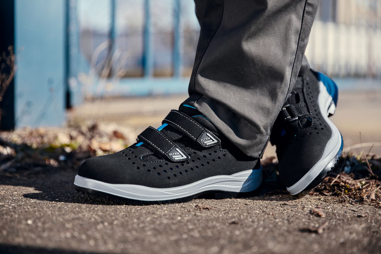 ELTEN - FAIT PAR PASSION - Fondée en 1910 à Uedem dans le Bas-Rhin par Johann van ELTEN en 1910, sa vision a fait la percée pour la chaussure de sécurité moderne telle que nous la connaissons aujourd'hui : l'invention révolutionnaire de la première chaussure de travail ELTEN en cuir au lieu de bois, comme d'habitude à l'époque. Sandales de sécurité - Doublure intérieure : doublure textile respirante - Protection anti-perforation : sans - Semelle intérieure amovible ELTEN Sandales de sécurité IMPULSE XXT blue Easy ESD S1, 719755-42, ELTEN WELLMAXX, microfibre, doublure textile respirante, languette rembourrée, semelle intérieure toute la surface ESD PRO black, semelle en non-tissé souple ESD, semelle PU/PU WELLMAXX TRAINERS, EN ISO 20345 S1 SRC, forme A. Microfibre. Doublure textile à régulation thermique. Languette rembourrée. Semelle intérieure entière ESD PRO black sur toute la surface contenant des matériaux recyclés. Première semelle en non-tissé doux compatible ESD. Semelle PU/PU WELLMAXX TRAINERS. Embout en composite. EN ISO 20345:2022 S1 FO/SR, type A. Système de laçage élastique pour un réglage rapide et individuel... Elten MPULSE XXT blue Easy ESD S1 Sandale S1, Ganzflächge... ELTEN IMPULSE XXT Blue Low ESD S1 Chaussures De Sécurité Pour Homme Et Femme En Textile, Embout En Plastique (plus Léger Que L'embout En Acier De cette tradition, l'homme, sa protection et sa sécurité sont au cœur de notre travail. ELTEN IMPULSE EA blue Easy ESD S1 7171501 Sicherheitssandale Semelle PU/PU, antidérapante (SRC), semelle extérieure résistante à la chaleur jusqu'à 130 °C, couvre-pied : sans Semelles (semelles) - Numéro d'article : 719755 Sans métal et sans cuir, amorti WELLMAXX
