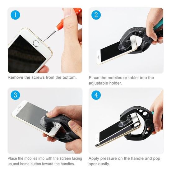 Kit complet d'outils de réparation (19 pièces) pour Smartphone et MULTIFONCTION : Le kit de 7 pièces propose tout ce dont vous avez besoin pour le démontage, le nettoyage, la réparation ou le changement de batterie de votre... Et ce petit ensemble de tournevis est livré avec tous les outils nécessaires pour une grande variété de travaux et une boîte de rangement et un sac Oxford pour protéger, léger et portable. Caractéristiques : Version améliorée Professionnel Magnétique Multifonction : Jeu de tournevis 155 en 1 Outil de réparation d'ouverture et de levier pour iPhone, iPad, ordinateur, ordinateur portable, tablette, PC, consoles de jeux, PS3/4, Xbox, etc. Ce kit d'outils de levier contient 7 pièces, spécialement conçus pour les réparations sur tous les types d'appareils mobiles et autres pièces cassées Ce kit d'outils de 23 pièces fournit tous les tournevis, embouts, pinces et spudgers indispensables pour réparer pratiquement n'importe quel smartphone... Le kit d'outils de réparation est assez bon pour effectuer la plupart de vos travaux d'ouverture et de réparation d'appareils électroniques portables et d'autres petits appareils électroniques. Excellente qualité et bonnes performances : le kit d'outils de réparation avec 101 embouts de tournevis magnétiques différents est fabriqué avec une dureté de 55-60HRC en alliage de chrome vanadium pour une longue durée de vie, la pointe est stable et ne se dénude pas facilement, peut supporter une charge plus lourde, serrer les vis, améliore les performances, économise votre temps et vos efforts. Fabriqué en alliage d'acier, plus robuste et pas facile à casser Jeu d'embouts de tournevis Pentalobe : 2 x P2, 2 x P5, P6, P8.Jeu d'embouts de tournevis Tri-wing Tripoint : 2 x Y000, Y00, Y0, Y1, Y2.Jeu d'embouts de tournevis Pozidriv : PZ000, PZ00, PZ0, PZ1, PZ2.Embouts en U : 2 x 2.6, 2 x 3.0, 8.Embouts triangulaires : 20, 2.3, 2.6, 3,0.Embouts Phillips pour carte mère : W2.0, W2.5.Embouts carrés : S0.Aiguille SIM S1, S2 : 0.8, 10 Gamebit pour Switch : G3.8MM, G4.5MM (2). Ensemble robuste et complet avec étiquettes pour un rangement facile : il comprend également un outil de levier spécial, une pince antistatique, des ventouses, des poignées en silicone antidérapantes, un tapis à vis magnétique, une dragonne antistatique, un couteau utilitaire, un ouvre-médiator, un souffleur de poussière en caoutchouc, etc. Outils d'ouverture : 1 x ventouse en caoutchouc 1 x spatules en nylon fibreux 1 x spatule en acier ultra-mince 1 x spatule en acier à poignée en caoutchouc 2 x leviers en plastique à double tête bleus 4 x cartes d'ouverture 6 x palettes triangulaires (3). Ce kit d'outils d'ouverture aide à enlever l'écran du filtre ou le couvercle sans dommage, ce qui le rend facile à ouvrir pour réparer Contenu de l'emballage : 3 spudger en métal., 1 plaque triangulaire., 1 ventouse transparente. Outil Réparation Tablette Portable Kit De Réparation Pour Téléphones Portables Et Tablettes - Audio-Vidéo Outil Réparation Téléphone Portable Le kit d'outils d'ouverture est facile à remplacer le couvercle de l'écran, adapté pour ouvrir n'importe quelle coque en plastique tels que téléphone portable, tablette, ordinateur portable, etc Il rend les réparations efficaces, confortables et simples.