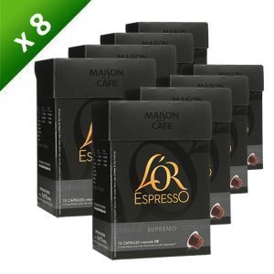 Capsules compatibles pour machines Nespresso (R)*. Dosette Senseo L'OR - Supremo - Intensity 10 - Nespresso Uyumlu Kapsül Kahve Fırsat Café Senseo SUPREMO, un café vigoureux et épicé, regorge de notes complexes de chocolat noir, de chêne et de noix LOT DE 5 - L'OR Espresso Supremo Intensité 10 - 10 Capsules de Café en aluminium Compatible Nespresso. Produits recommandés. L'OR Espresso Forza Café en... Clou de Girofle de Madagascar en boite de 10 dosettes Max daumin (R) *La marque utilis e est d'une tierce partie, non li e Jacobs Douwe Egberts, Intensit 10 ; complexe pic puissant, SUPREMO, un caf vigoureux et pic , regorge de notes complexes de chocolat noir, de ch ne et de noix Nos capsules espresso sont fabriquées en aluminium pour vous fournir un expresso qui a un goût vraiment inoubliable. L'aluminium est connu pour préserver efficacement l'arôme et les saveurs du café et vous permet désormais de profiter du goût intense d'un espresso L'OR pour une expérience unique 10 capsules de 5,2 g (poids net : 52 g) 10 paquets = 520 g Intensité 10 ; complexe – épicé – puissant