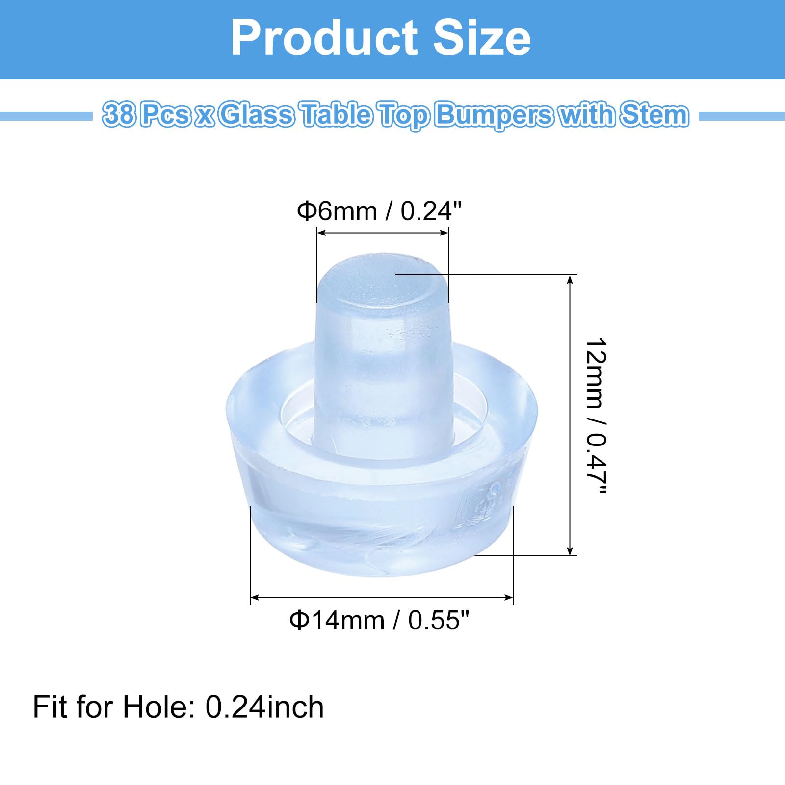 Description : Matériau en caoutchouc durable : les patins de meubles sont fabriqués à partir de caoutchouc robuste et durable, préservant l'esthétique de vos meubles tout en offrant des avantages fonctionnels, et maintenant leur efficacité au fil du temps avec une utilisation régulière. Pied meuble SOURCING MAP 26Pcs 6,5mm avec Tige en Caoutchouc Jeffdad Lot de 50 butoirs de table en verre – 5 tailles de bouchons en caoutchouc transparent pour protection de table en verre non adhésif. 4,6 sur 5 étoiles... Longueur de la tige : 7 mm. Épaisseur du capuchon : 3,2 mm. Applications polyvalentes : idéal pour une utilisation sur les tables de terrasse, les meubles d'extérieur, les bureaux, les armoires et plus de meubles pour des effets anti-collision, tampon et silencieux. Caractéristiques : Matériau : Caoutchouc., Couleur : Transparent. Quantité et taille : diamètre du capuchon : 9 mm ; épaisseur du capuchon : 3,2 mm ; diamètre de la tige : 5 mm ; longueur de la tige : 7 mm ; contenu de l'emballage : 50 patins pour meubles. Ajustement approprié : assurez-vous que la taille du trou sur vos meubles correspond au diamètre de la tige des pare-chocs pour éviter tout risque. Diamètre de la tige : 5 mm. Se termine le bruyant - Fonctionne avec tous les types de fermeture des choses de placards à claquer les portes de penderie coulissante pour attire Bien mieux que le bâton-SUR LES TYPES - Si vous utilisez actuellement l'auto-collant de pare-chocs, les enlever et les remplacer par ceux-ci Patin Antiderapant Sourcing Map 16pc Pare-Choc De Table En Verre Tige Patin De Protection Meuble Patio Anti-Collision Anti-Bruit Souple Intégré Transparent 8.5mm Caoutchouc Antidérapant Installation facile : pour l'utiliser, insérez simplement la tige du pare-chocs d'armoire dans le trou pré-percé de votre table ou armoire pour empêcher le verre de glisser, sécurisez la table en verre, et fournissez un rembourrage pour les portes d'armoire et les tiroirs.
