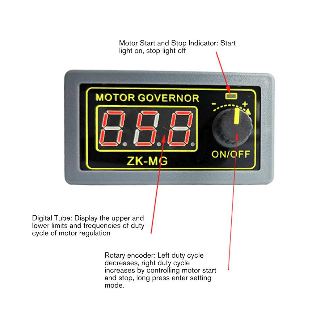 Puissance maximale : 150 W Fréquence de fonctionnement : 1 KHz ~ 99 KHz réglable, pas de 1 KHz, fréquence par défaut de 20 KHz, précision d'environ 1 % Cycle d'utilisation : 0 à 100 %, 1 % de marche Dimensions du produit : 76 x 43 x 26 mm. DollaTek Contrôleur de Moteur DC PWM réversible 12V 24V DollaTek PWM générateur de Signal contrôleur de vitesse du moteur contrôle de la lumière LCD taux d'impulsion rapport de service Module réglable contrôleur d'entraînement de moteur PWM DESCRIPTION Le générateur de signaux est un appareil qui fournit des signaux électriques avec différentes fréquences, ondes rectangulaires... Équipé d'un bouton de démarrage, et peut être contrôlé par interrupteur externe, pour répondre à diverses exigences de contrôle des clients. Appuyez longuement sur la sortie de l'interface de réglage Rotation dans le sens antihoraire - le paramètre de réglage correspondant diminue Rotation dans le sens des aiguilles d'une montre - le paramètre de réglage correspondant augmente Port d'arrêt à l'arrière : Un bouton de commutation externe ou un niveau de 3,3 V peut être connecté. Fonctionnement du bouton encodeur numérique : Dans l'interface par défaut : (l'affichage par défaut est le cycle de service) Démarrage et arrêt du moteur à interrupteur court Appuyez longuement sur l'interface de réglage. La limite inférieure du cycle cyclique est affichée en « L » + deux chiffres, la limite supérieure du cycle cyclique est affichée en « H » + deux chiffres ou « 100 », et la fréquence de fonctionnement est affichée en « F » + deux chiffres. Cycle de service, cycle de service supérieur et inférieur et fréquence de travail peuvent être définis pour faciliter le fonctionnement et l'utilisation de leurs moteurs selon leurs caractéristiques de travail. Rotation dans le sens antihoraire - le cycle de service diminue Rotation du cycle de fonctionnement dans le sens des aiguilles d'une montre augmente Sous l'interface de réglage : Appuyez brièvement sur le paramètre de réglage, et le paramètre de réglage est commuté entre la limite inférieure du cycle de travail, la limite supérieure du cycle de travail et la fréquence de travail. Lorsque le bouton est fermé ou que le niveau de 3,3 V est abaissé, l'état de démarrage/arrêt du moteur peut être commuté. Tension d'entrée: cc 10V-55V · Tension de sortie: linéarité sous charge · Courant Max: 60A · Courant persistant: 40A · Plage de contrôle de vitesse: 0%-100... Mini Moteur Electrique 12v Contrôleur De Vitesse Du Moteur, 775 Haute Puissance étanche Réglable Regulateur Tension 12v Le bouton d'encodeur numérique ajuste la vitesse du moteur, ce qui est plus précis et cohérent que le potentiomètre ordinaire.