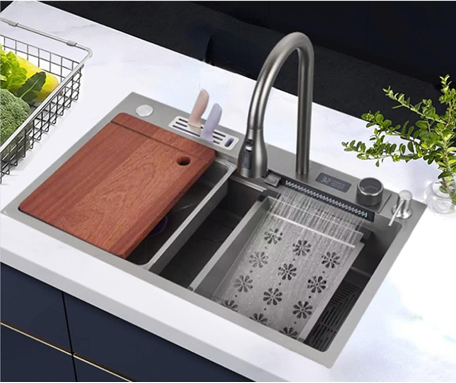 robinet de cuisine cascade Leur design épuré permet également d'économiser de l'espace et de réduire l'encombrement autour de l'évier. SUMERAIN Mitigeur de cuisine chromé escamotable 2 trous installé devant la fenêtre, Mitigeur évier pivotant à 360°extractible avec 2 Jets aux Choix Modernisez votre cuisine avec notre élégant robinet à douchette extractible gris acier, conçu pour s'intégrer parfaitement à tout évier. Ce robinet de cuisine polyvalent allie style et fonctionnalité, ce qui en fait le choix idéal pour les chefs amateurs comme pour les utilisateurs quotidiens Design à poignée unique : le levier unique au design intuitif met une commande complète à portée de main - Réglez instantanément la température de l'eau et la pression du débit en un seul mouvement fluide. Robinet De Cuisine En Laiton Avec Filtre à Eau Potable, Robinet Mélangeur Pour évier, Robinet D'eau Potable Avec Spray - Chine Robinets De Cuisine OEM ODM, Robinet De Cuisine Installation facile : comprend deux tuyaux d'eau pré-connectés (chaud/froid) et s'adapte aux configurations standard d'évier à 1 trou ou 3 trous (plaque de pont vendue séparément). Le noyau de valve en céramique amélioré a subi plus de 500 000 tests de durabilité pour éviter les fuites et garantir une performance à long terme. Durable et fiable : fabriqué en acier inoxydable SUS 304 avec une finition nano PVD robuste à 7 couches, ce robinet de cuisine est conçu pour résister à la corrosion et à la rouille. Robinet de cuisine en cascade Pulvérisateur à jet Robinet pour lavabo avec trou simple chaud et froid en acier inoxydable Montage sur plafond suspendu...