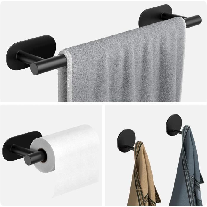 Le porte-papier toilette noir peut être utilisé horizontalement ou verticalement, et le côté droit est surélevé pour éviter que la serviette en papier ne tombe. Accessoires No poinçon - Plus résistants que les accessoires adhésifs standard sans poinçons ni ventouses. Charge utile supérieure à 10 kg. Sans perçage. Geen... 【Salle de bain bien rangée】 L'ensemble de serviettes de salle de bain se présente dans un design noir mat simple mais robuste qui correspond parfaitement à vos robinets, pommes de douche et accessoires de salle de bain pour garder votre salle de bain bien rangée et vous mettre de bonne humeur. Porte Papier Toilette Mural Newaner Porte Serviette Salle De Bain Porte Papier Toilette Crochet Adhesif Mural, 4 Pièces Accessoires Inclus Support Serviette, Support Papier Toilette Sans Percage Noir, Crochets Adhesifs Accroche Papier Toilette Mural 【Facile à installer】 La tringle de salle de bain est sans perçage, le dos de la tringle de salle de bain est fait de colle 3M de haute qualité, qui a une forte adhérence, mais il convient de noter que assurez-vous de l'utiliser au moins 24 heures après l'installation est terminé. Marque. Newaner · Matériau. Acier inoxydable · Type de finition. Noir mat · Couleur. Noir · Type d'installation. Autocollante · Dimensions du produit. 40L x 8l... Porte Manteau QMAHA Crochet Adhésif En Acier Inoxydable - 12 Pièces Murales Auto Patere Murale Le porte papier toilette noir peut être utilisé horizontalement ou verticalement, et le côté droit est relevé pour empêcher la serviette en papier de tomber. Pas besoin de dépenser de l'argent sur d'autres produits.