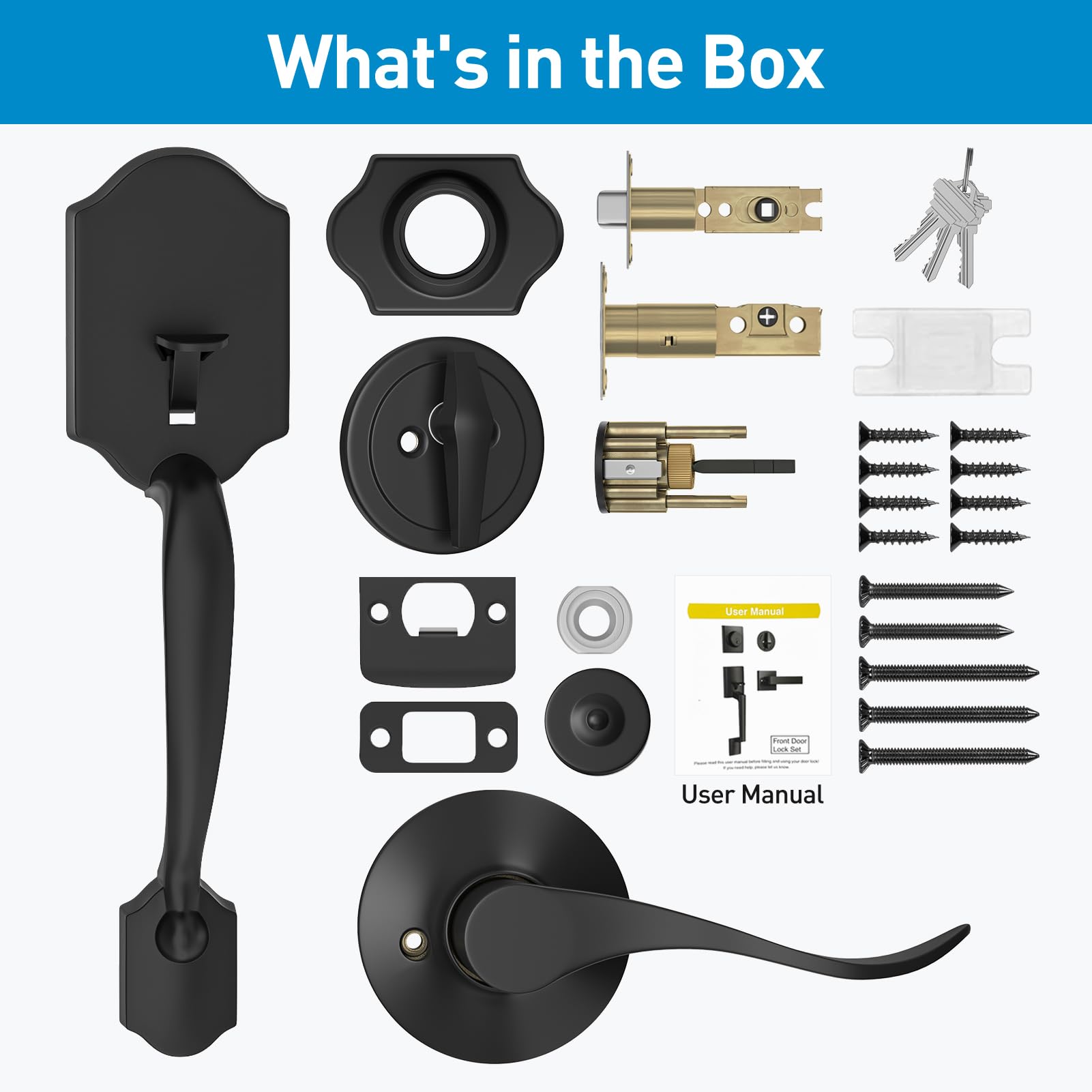 NCSEN L'ensemble de serrure de porte extérieure en bronze huilé avec pêne dormant est vintage et classique pour votre décoration d'intérieur. Schlage Pêne Dormant De Porte Extérieure à Cylindre Simple Noir Mat Avec Garniture Greenwich Cote Aaa Le levier d'appoint Schlage avec garniture Addison et serrure pour garde-robe est parfait pour les portes où le verrouillage n'est pas nécessaire. Le levier... Serrure à Pêne Dormant Serrure De Porte Coulissante Serrure De Porte Avec Vis De Montage Serrures Quincaillerie Porte Garantie de qualité : assurez-vous que les cycles d'ouverture dépassent 250 000 fois, la rotation mécanique et la couleur de la surface passent les tests ANSI Grade 3., Le vendeur et le fabricant nous promettent une garantie de 3 ans d'utilisation. Ces poignées de porte extérieures avec pêne dormant sont de finition noire matte, adoptent le levier de la porte de passage.L'ensemble de serrures de porte classique est fait de leviers de porte en alliage de zinc avec rosette carrée.La conception allongée de la poignée s'harmonise avec le pêne dormant carré robuste pour être combiné Leviers en zinc massif et pêne dormant : les poignées de porte de passage avec pêne dormant carré robuste pour pack combo sont super robustes. Design spécial avec poignées de porte, aucun métal tranchant n'est sûr pour tous. Utilisation réversible pour gauchers et droitiers, installation pratique. L'ensemble de poignées de porte d'entrée VEVOR offre une installation facile avec un espacement des trous réglable, une construction robuste en alliage de zinc et une finition noire mate élégante pour plus de durabilité et d'élégance.