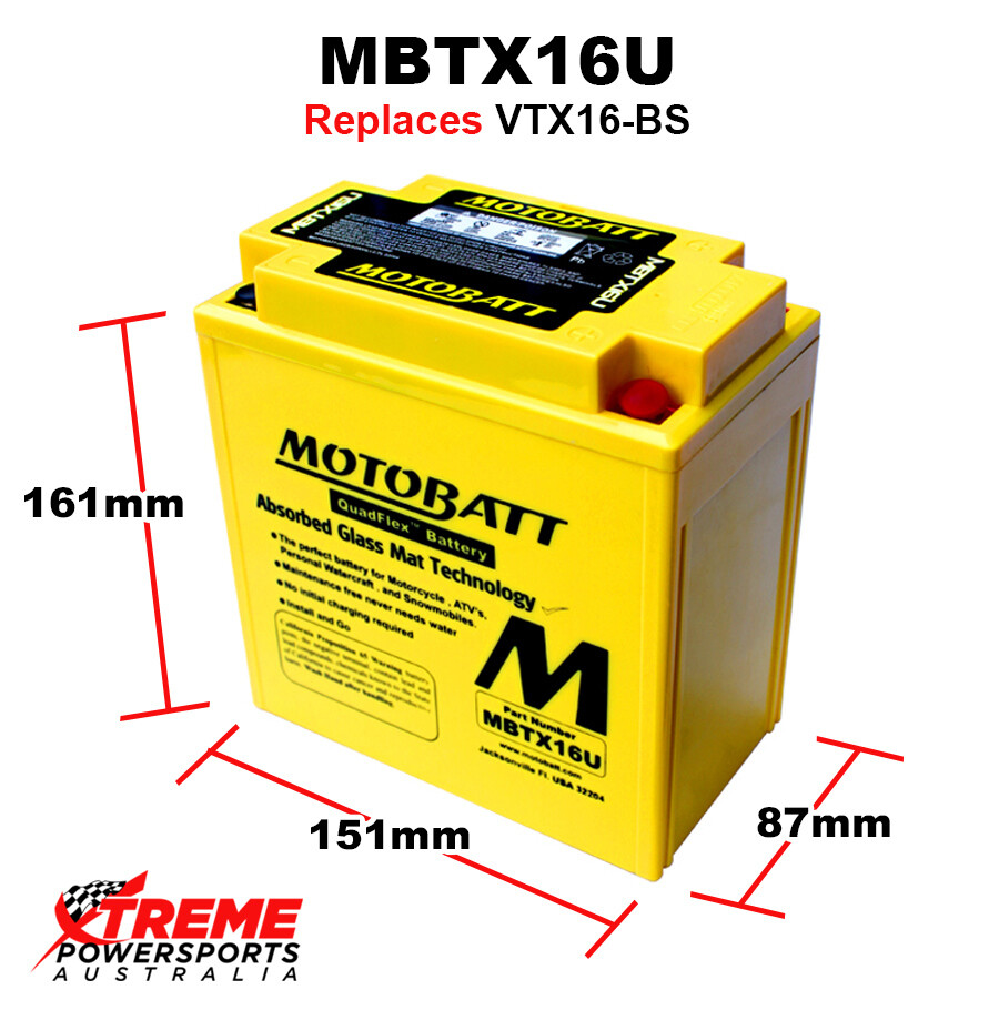 Agm Battery BMW Battery Motobatt AGM 19 A/H Yellow MBTX16U R1200RT LC R1250RT K1600 Bagger E Quadflex Agm Battery Comprar Bateria Motobatt Mbtx12U Amarilla a precio de oferta Motobatt Mbtx16u Replacement Batterie Moto 4 Pôles 19 Ah MBTX16U | Motobatt Motobatt Agm Battery La batterie haut de gamme QuadFlex MBTX16U de Motobatt est équipée de 4 bornes. Elle dispose d'un supplément de 20 % d'Ampère-heure et d'une meilleure capacité de démarrage à froid (CCA