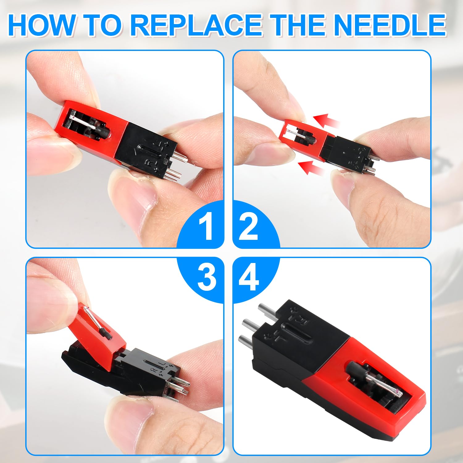 Le remplacement de la cartouche de votre tourne-disque est assez simple à réaliser par vous-même. L’aiguille étant extrêmement fragile, il est conseillé de garder la protection de l’aiguille pendant toute la durée de l’installation Spécification :Condition : neufType d'article : stylet de phonographeMatériel : ABS+aluminiumTension de sortie : (1 kHz = 3,54 cm/sec) 200-300 MVDéséquilibre des canaux : (1k Hz) ≤3dbSéparation des canaux : (1k Hz) ≥15dbFréquence ncy Réponse : 80-10000 Hz (±7dB)Poids : env. Construction ABS + aluminium anti-usure et stable : les aiguilles pour tourne-disque sont fabriquées à partir de plastique ABS de haute qualité et de bras en aluminium, ce produit offre une excellente durabilité et stabilité. REMPLACEMENT DE L'AIGUILLE Tourne-disque Plaque Tournante EUR 10,29 Stylet à Aiguille Pour BSR, Double Face Aiguille Pour Tourne Disque Remplacement Stylet Pour Tourne-Disque Stylet Platine Vinyle Adapté Pour BSR ST-16, ST-17 Vous pouvez profiter d'une reproduction sonore de haute qualité et d'une lecture précise de votre musique préférée. Cela vous fait gagner du temps et des efforts, vous permettant de commencer rapidement à profiter de votre collection. Il est compatible avec la plupart des phonographes disponibles sur le marché, offrant choix polyvalent et fiable pour votre tourne-disque. Conception d'aiguille conique en céramique de diamant: Cette aiguille de tourne-disque présente une conception d'aiguille conique en céramique de diamant, assurant une longue durée de vie et offrant une interprétation parfaite de la musique. Il peut résister à une utilisation régulière et offrir des performances fiables dans le temps. Tourne-disque aiguille remplacement universel haute précision tourne... 5 g/0,2 ozApplication :Pour CrosleyPour IONPour VictrolaPour 1byonePour JensonPour la technologie de l'innovationPour BoytonePour TechPlayPour CapehartPour Boytone BT-17DJB, BT-17DJM, BT-17DJS, BT-19DJB-C, BT-1 9DJM-C, BT-19DJS-C, BT-16DJB-C, BT-17TB, BT-17TBC, BT-21DJM-CDSP, BT-14TBB-SP, BT-15TBSMPour Radio Shack 3500, M3100, M3150, M4000, MCD4001, RCT1200, RCT250 0, RCT7000Pour Sounddesign 5868, 5869, 5871, 6821, 6822, 6833, 6842, 6846, 6848, 6854Pour THOMAS PACONI TCP-MSE825Pour Teac DC2800, GF30, GF180, GF300, GF 600Pour York Yorx M2408, M2409, M2676, M2202, M2203, M2408, M2409, Q802APour CROWN CD2000, MZ1100, MZ2150Pour Fisher ST141, ST05D, ST707JPour GRACE DIGITAL GDI-NDL2, GDI- TW3USB, GDI-C2CDRW, GDI-VW00, GDI-VW03, ITC-TWCDRW, pour Victoria Tunewriter IIIRetirez l'ancien stylet :1., Saisissez le milieu de la cartouche du stylet avec vos mains2., Alignez la pointe d' tournevis à fente avec la position indiquée par le point A dans le schéma suivant, et tirez légèrement plus fort sur l'ancien stylet3., Saisissez ensuite le stylet avec votre main et retirez-le., Installez nouveau stylet :1., Saisissez l'avant du nouveau stylet et le milieu de la cartouche avec vos mains., 2., Alignez la queue du nouveau stylet sur la position des rainures de la cartouche indiquée par le point B dans le schéma ci-dessous, et forcez légèrement la queue du nouveau stylet dans les rainures de la cartouche, puis poussez doucement3., Appuyez ensuite à la main sur le nouveau stylet à l'avant de la cartouche et